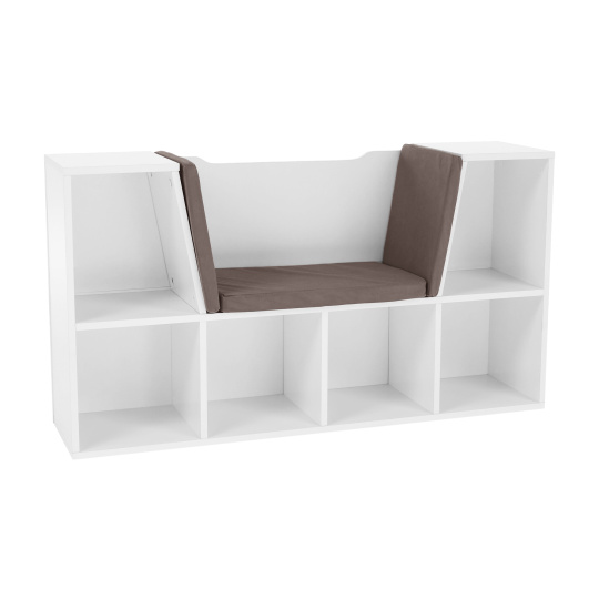 Dětská knihovna s místem k sezení, bílá/šedá, FERIA