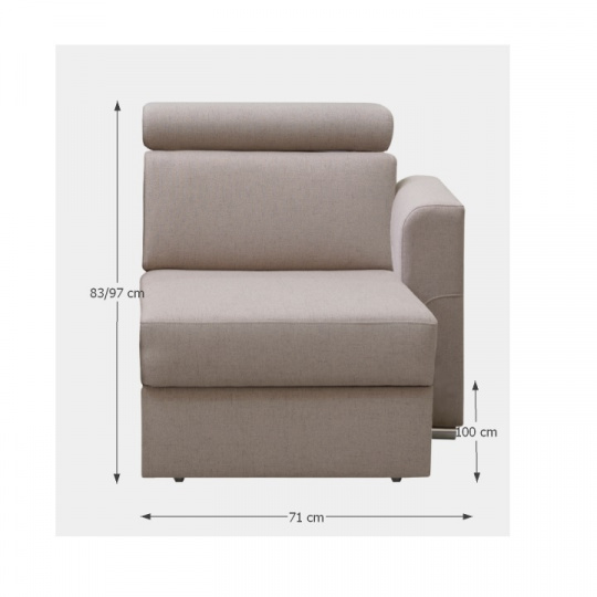 ;"1-sed 1 1B P k sedací soupravě MARIETA, pravé provedení, na objednávku Rozměry: (ŠxHxV): 71x100x83 / 97 cm Výška spodního prostoru od podlahy: 5 cm Materiál: látka Cable Oděruodolnost textilie podle testu Martindale: 72 000 oděrek Barva: béžová Nosnost na osobu: 90 kg Dodávané v demontu, doba dodání 6-8 týdnů. Nabízíme vám možnost složit si sedačku ve vlastním rozměru a podle vlastních potřeb. Komponenty na složení hledejte v naší nabídce. Máme pro vás hned sedm barev látky Cable a sedm barev ekokůže. Při individuální objednávce je třeba zaplatit 20% zálohu z dané částky. Po uhrazení zálohy bude Váš požadavek zadána do výroby. Doba dodání 8-10 týdnů. Cena takto složené sedačky v jiné barvě závisí na počtu jednotlivých dílů, které ji tvoří. Doporučujeme prověřit si konečnou cenu na e-mail adrese nakup@tempo-kondela.sk.