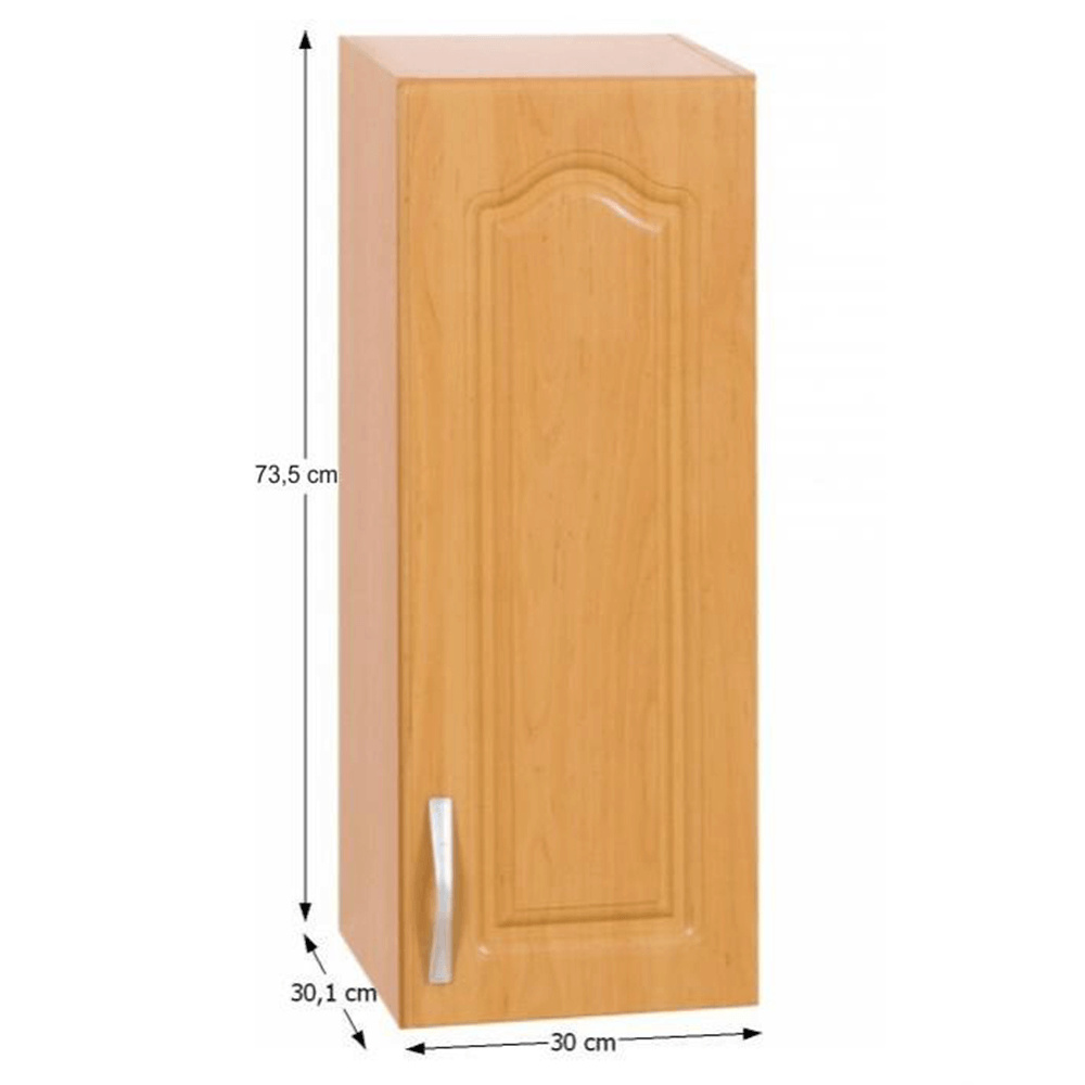 Materiál: korpus: DTD laminovaná / dvířka: MDF Barva: olše Rozměry (ŠxHxV): 30x30,1x73,5 cm Tloušťka materiálu: 16 mm horní pravé provedení Dodávané v Demonte Možnost dokoupení ruzných sektorových skríněk,koruny a univerzálního L/P dřezu. Cena za 1 bm pracovní desky ke LORA MDF klasik olše je 1.450 Kč. Ceny spodních skřínek jsou bez pracovní desky. Cena za 1 bm koruny je 590 Kč a koruny na W60/60 je 590 Kč Požadovaný rozměr ozdobné lišty napište do poznámky v objednávce. Horní skříňky se nemontují na lištu, ale věší se na háčky. Háčky do zdi nejsou součástí balení, je třeba si je dokoupit.