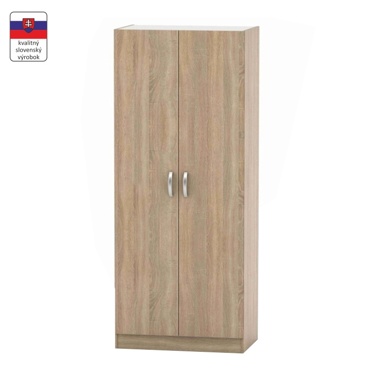 2-dveřová skříň, věšáková, BETTY 2 Materiál: DTD laminovaná Barva: dub sonoma Rozměry (ŠxHxV): 60x56,6x220 cm Tloušťka materiálu korpus: 16 mm Dodávané v demontu. Hmotnost: 58kg