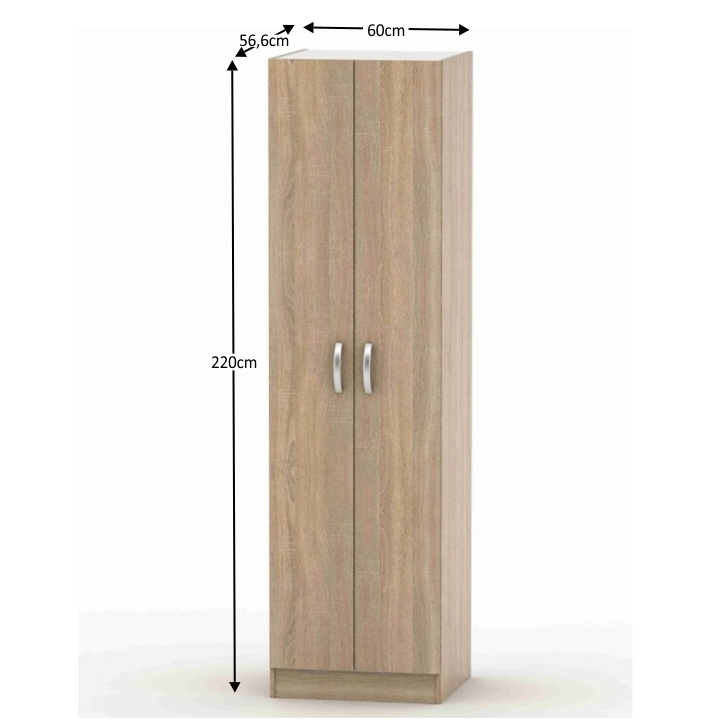 2-dveřová skříň, věšáková, BETTY 2 Materiál: DTD laminovaná Barva: dub sonoma Rozměry (ŠxHxV): 60x56,6x220 cm Tloušťka materiálu korpus: 16 mm Dodávané v demontu.