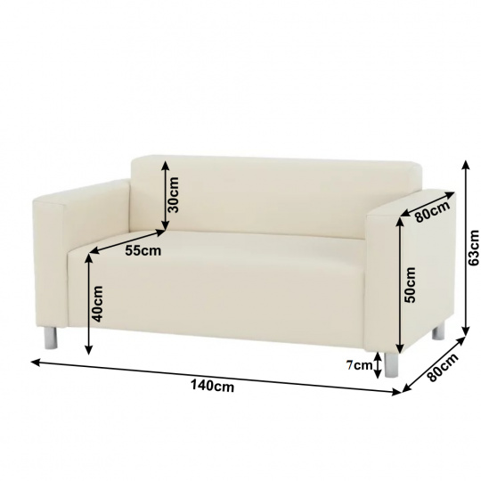 Celočalouněný 2-sed HOMKER Materiál: ekokůže Oděruodolnost textilie podle testu Martindale: 100 000 oděrů Barva: béžová Rozměry (ŠxHxV): 140x81x71 cm Hloubka sedu: 55 cm Výška sedu: 40 cm Výška spodního prostoru od podlahy: 10 cm Opěrka na ruce (HxV): 81x50 cm Výška zádové opěrky: 32 cm Na nožičkách Molitanová výplň sedáku Dodávána v demontu Nabízíme dalších 6 barevných odstínů ekokůže. Cena sedačky na individuální objednávku je 7.390 Kč. Při individuální objednávce je třeba zaplatit 20% zálohu z dané částky. Po uhrazení zálohy bude Vaša objednávka zadána do výroby. Doba dodání 6-8 týdnů.