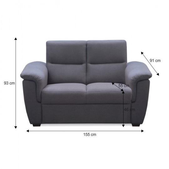 ;"2-sed celočalouněný BORN Materiál: látka Barva: šedá Rozměry (ŠxHxV): 155x91x93 cm Výška spodního prostoru od podlahy: 3 cm Nosnost na osobu: 90 kg Dodávané v demontu. Při individuální objednávce je třeba zaplatit 20% zálohu z dané částky. Po uhrazení zálohy bude Váš požadavek zadána do výroby. Doba dodání 6-8 týdnů.