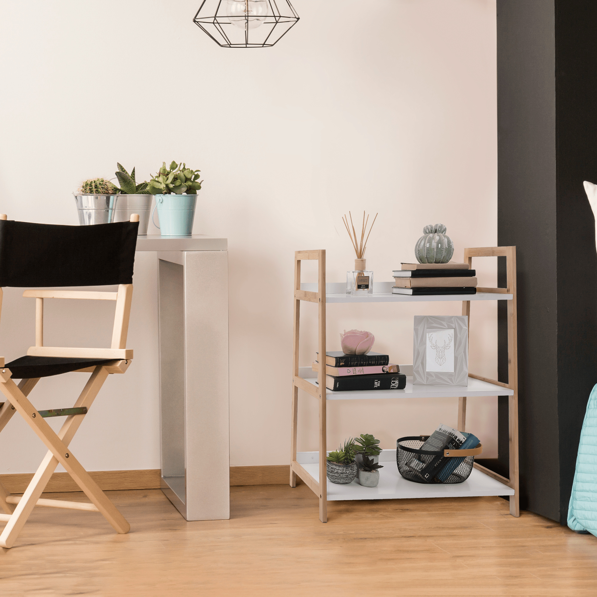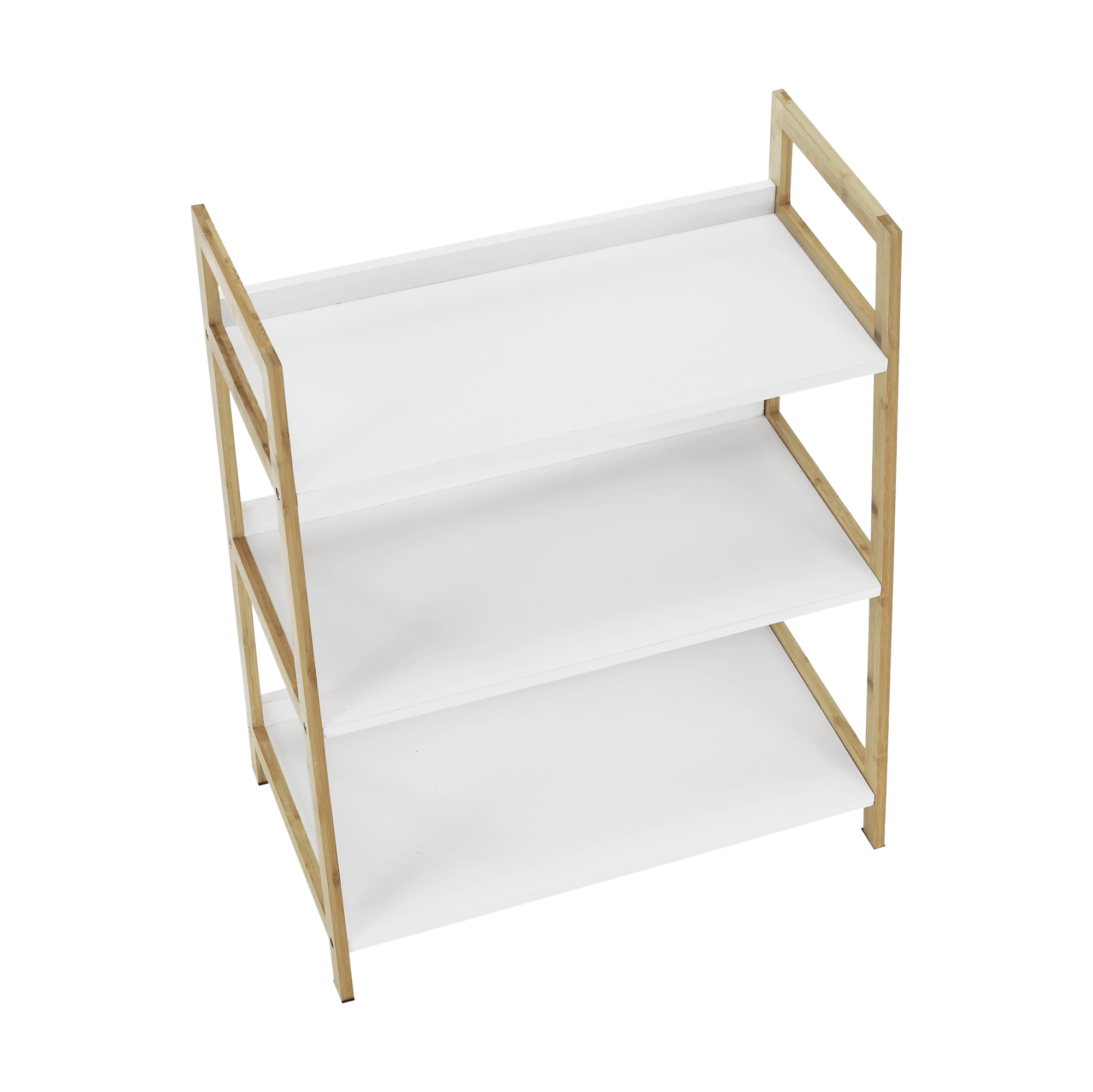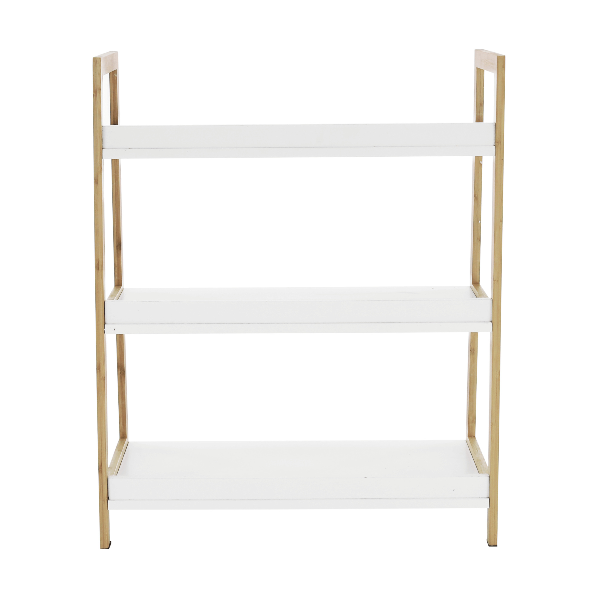 Víceúčelový regál Koen TYP 1 Materiál: MDF / bambus lakovaný Barva: bílá / přírodní Rozměry (ŠxHxV): 63x36x77,5 cm Tloušťka materiálu stojan: 1,4 cm Tloušťka materiálu police: 1,6 cm Nosnost na jednu polici: 5 kg 3 police Hloubka vrchní police: 27,4 cm Hloubka střední police: 30,3 cm Hloubka spodní police: 33,2 cm Prostor mezi vrchní a střední policí: 26,2 cm Prostor mezi střední a spodní policí: 27 cm moderní design praktický Dodávané v demontu.