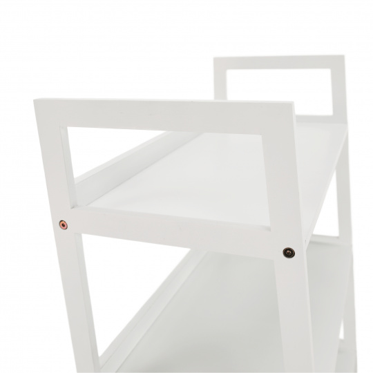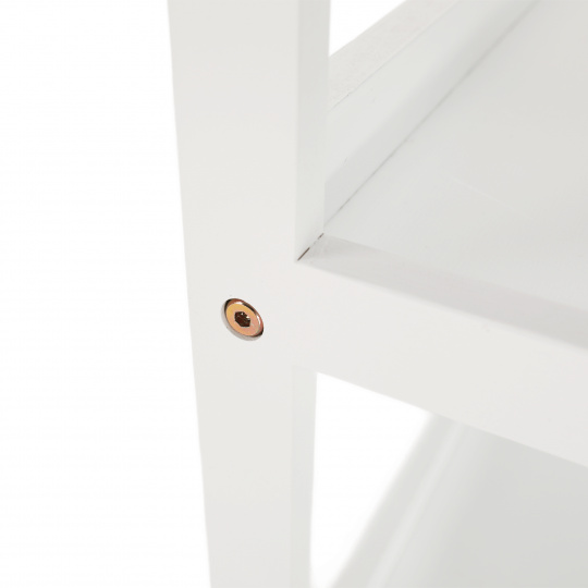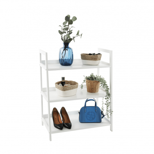 Víceúčelový regál Reon Materiál: MDF / bambus lakovaný Barva: bílá Rozměry (ŠxHxV): 63x36x77,5 cm Tloušťka materiálu stojan: 1,4 cm Tloušťka materiálu police: 1,6 cm Nosnost na jednu polici: 5 kg 3 police Hloubka vrchní police: 27,4 cm Hloubka střední police: 30,3 cm Hloubka spodní police: 33,2 cm Prostor mezi vrchní a střední policí: 26,2 cm Prostor mezi střední a spodní policí: 27 cm moderní design praktický Dodávané v demontu.