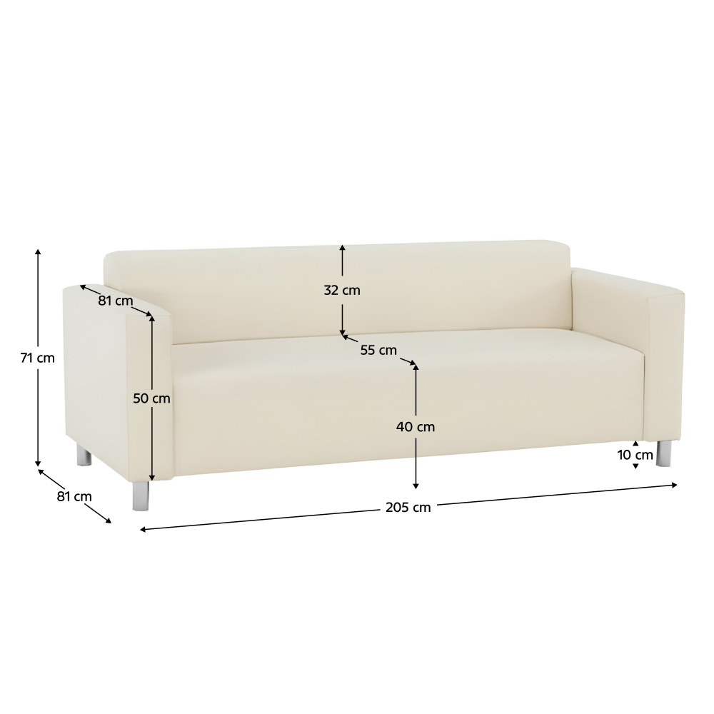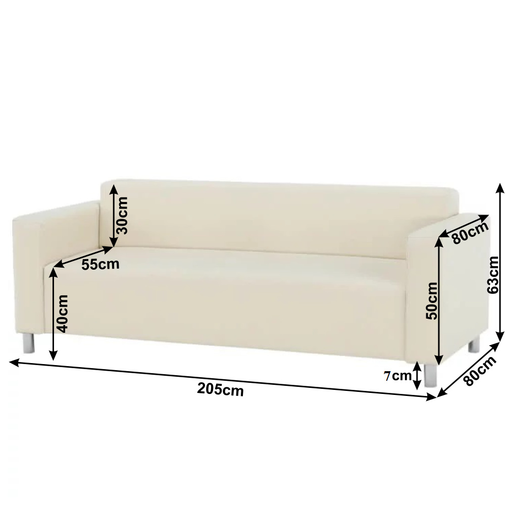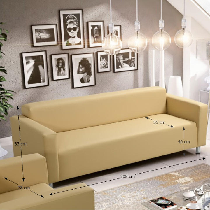 Celočalouněný 3-sed HOMKER Materiál: ekokůže Oděruodolnost textilie podle testu Martindale: 100 000 oděrů Barva: béžová Rozměry (ŠxHxV): 205x81x71 cm Hloubka sedu: 55 cm Výška sedu: 40 cm Výška spodního prostoru od podlahy: 10 cm Opěrka na ruce (HxV): 81x50 cm Výška zádové opěrky: 32 cm Na nožičkách Molitanová výplň sedáku Dodávána v demontu Nabízíme dalších 6 barevných odstínů ekokůže. Cena sedačky na individuální objednávku je 8.950 Kč. Při individuální objednávce je třeba zaplatit 20% zálohu z dané částky. Po uhrazení zálohy bude Vaša objednávka zadána do výroby. Doba dodání 6-8 týdnů.