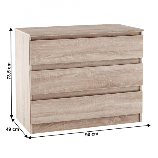 3 šuplíková komoda, dub sonoma, HANY NEW 003