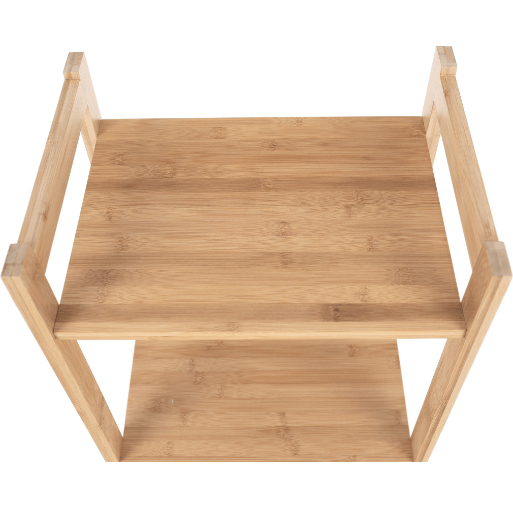 Materiál: bambus lakovaný Barva: přírodní Rozměry (ŠxHxV): 52x10x59,5 cm tvar čtverce 4 háčky tři poličky Nosnost: 10 kg Hmotnost: 2.3kg