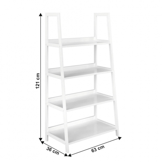 Víceúčelový regál Reon TYP 2 Materiál: MDF / bambus lakovaný Barva: bílá Rozměry (ŠxHxV): 63x63x121 cm Tloušťka materiálu stojan: 1,4 cm Tloušťka materiálu police: 1,6 cm Nosnost na jednu polici: 5 kg 4 police Hloubka vrchní police: 24,3 cm Hloubka 2. police: 27,4 cm Hloubka 3. police: 30,2 cm Hloubka spodní police: 33,5 cm Prostor mezi vrchní a 2. policí: 26,8 cm Prostor mezi 2. a 3. policí: 26,1 cm Prostor mezi 3. a spodní policí: 27 cm moderní design praktický Dodávané v demontu.