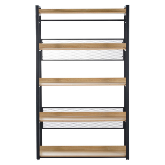 Materiál: ocel/MDF laminovaná Barva: černá/dub Rozměry (ŠxHxV): 120x40x200 cm Nosnost na jednu polici: 20 kg Tloušťka police: 1,5 cm Tloušťka oceli: 0,08 cm Rozměry police (ŠxH): 120x40 cm 5-policový Víceúčelový Moderní Praktický Kombinovatelný s KILOS NEW TYP 1-5 S vyrovnávacími nožičkami Možnost upevnění na zeď Dodáváno v demontu