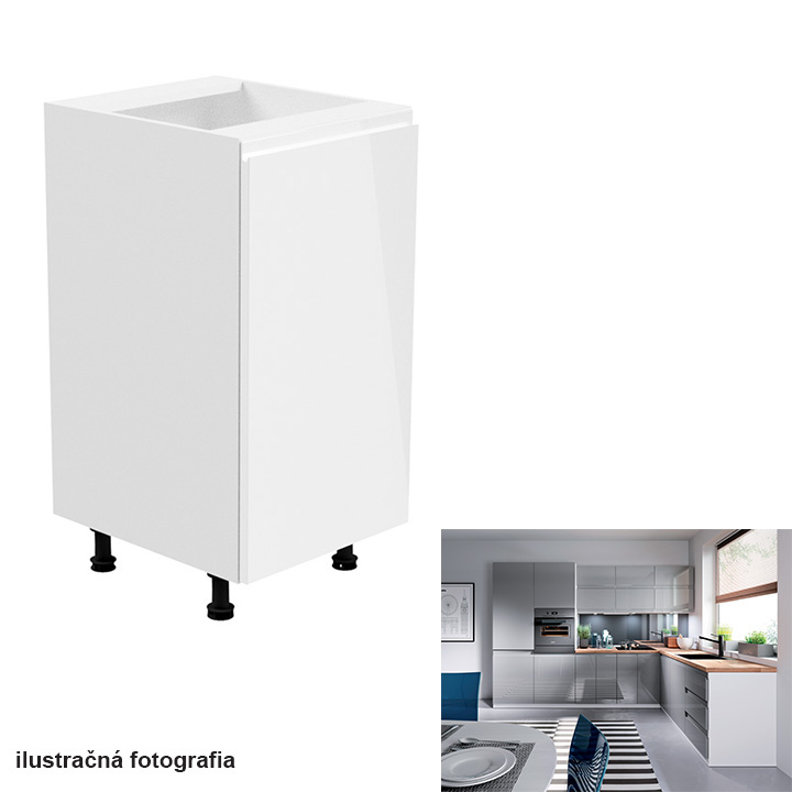Spodní skříňka, bílá / šedá extra vysoký lesk, pravá, AURORA D40
