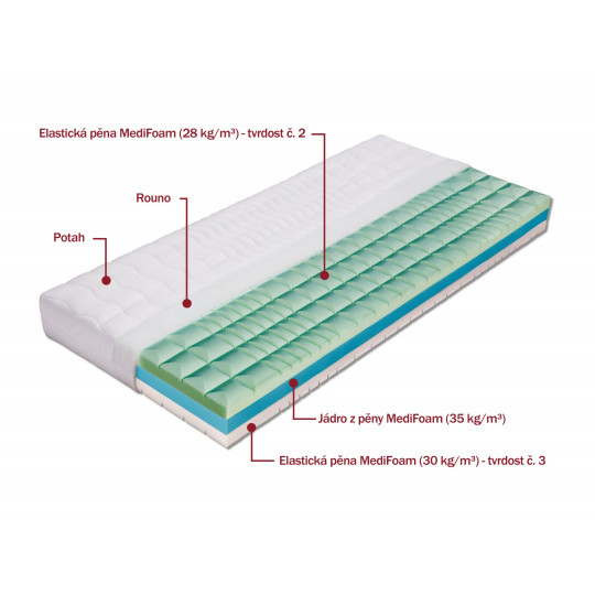 | výška včetně potahu | úplet, Aloe Vera | SilverGuard, Lyocell, Medicott, Levandule |