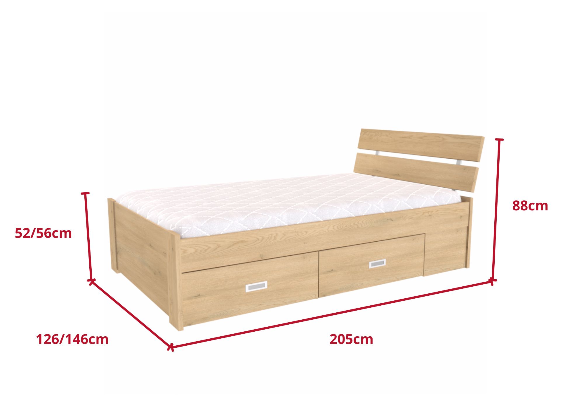 - Zvýšená lehací plocha 52 / 56 cm (včetně matrace 16 cm)