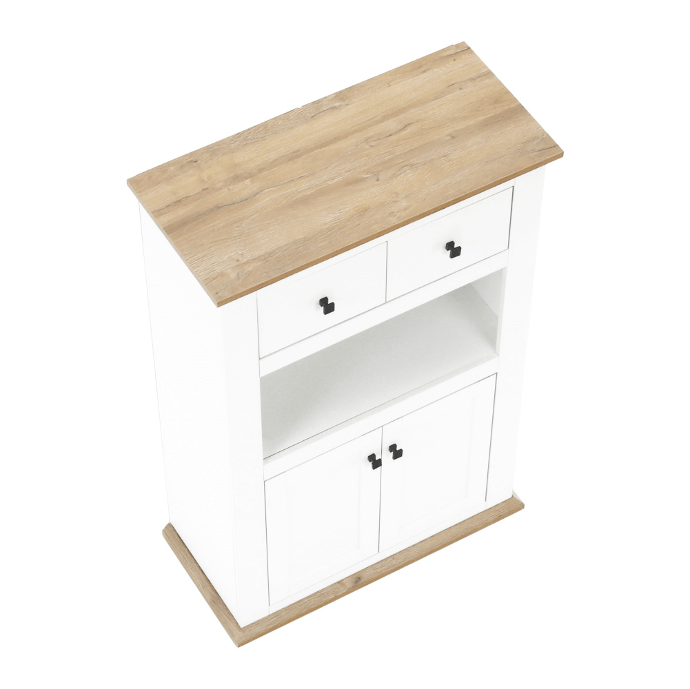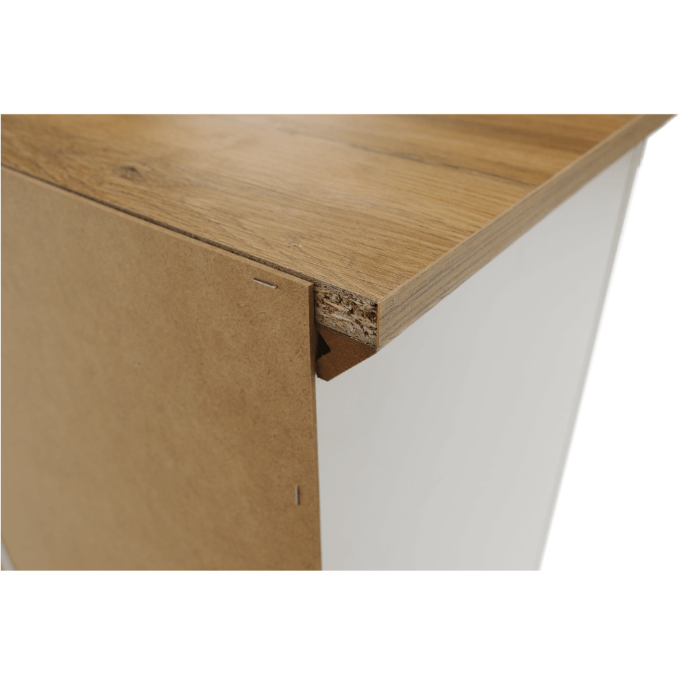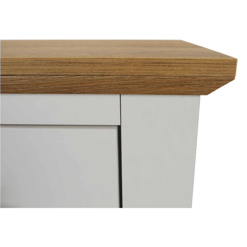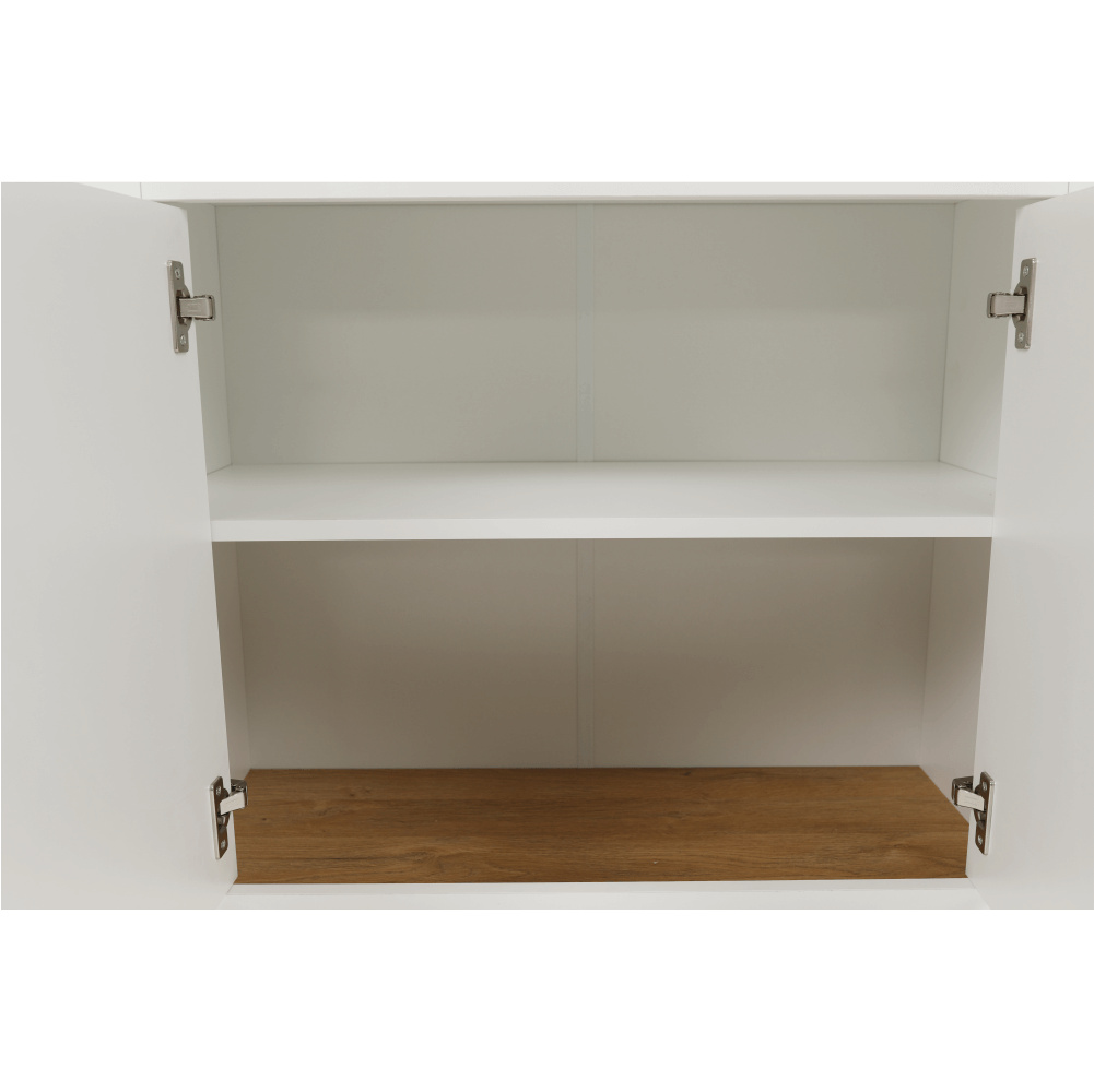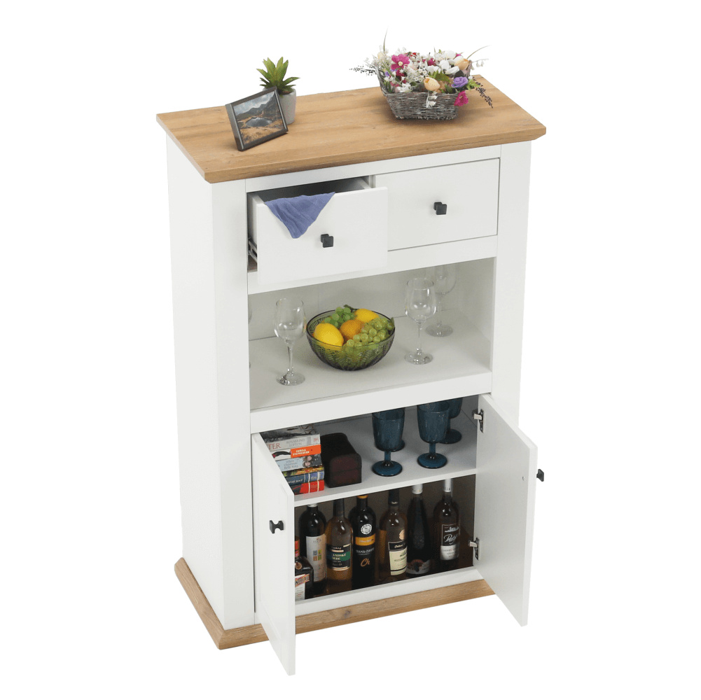 Materiál: DTD laminovaná / ABS hrany Barva: bílá / dub grand Rozměry (ŠxHxV): 85x40x130 cm Tloušťka materiálu: 40 mm dvoudveřová dvě skříňky dva šuplíky S úchytkami S 3D efektem elegantní V provensálském stylu kovové úchytky Dodávané v demontu