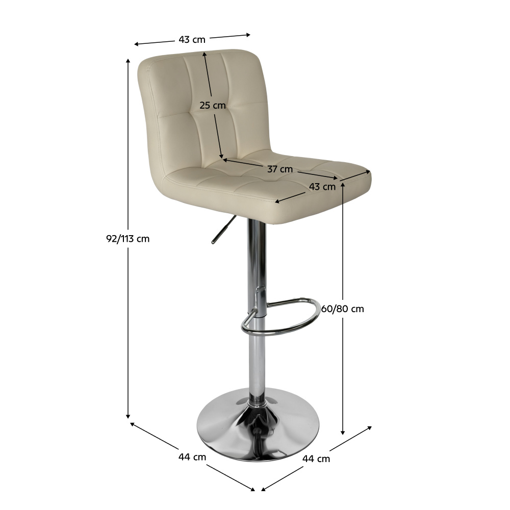 Barová stolička KANDY 2 NEW Materiál: ekokůže/chrom Oděruodolnost textilie podle testu Martindale: 100 000 oděrů Barva: béžová Rozměry (ŠxHxV): 44x44x92-113 cm Výškově nastavitelné sedátko Nastavení pomocí páčky Výška sedu: 60-80 cm Hloubka sedu: 37 cm Nosnost: 100 kg Dekorativní prošití Dodáváno v demontu