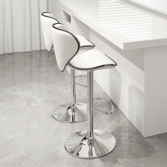 Materiál: ekokůže/kov Oděruodolnost textilie podle testu Martindale: 100 000 oděrů Barva: bílá/chrom Rozměry (ŠxHxV): 45x51x83-105 cm Výška sedu: 61-81 cm Hloubka sedu: 35 cm Šířka sedu: 45 cm Výška zádové opěrky: 24 cm Šířka zádové opěrky: 47 cm Průměr podstavy: 38 cm Nosnost: 100 kg Otočná S výškově nastavitelným sedadlem Opěrka na nohy Chromová podstava Designová Dodáváno v demontu