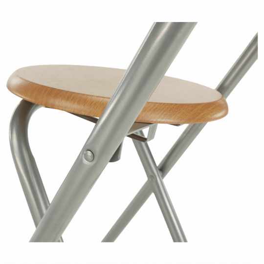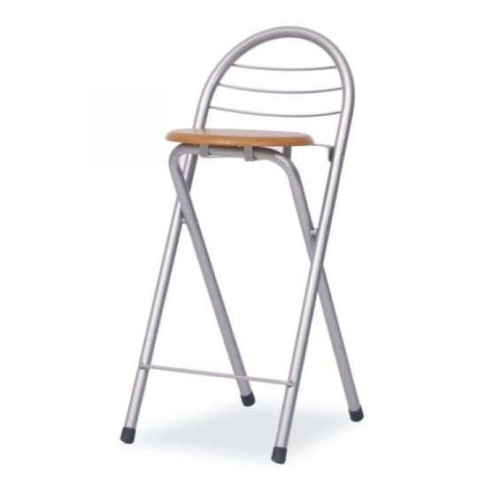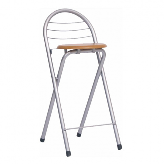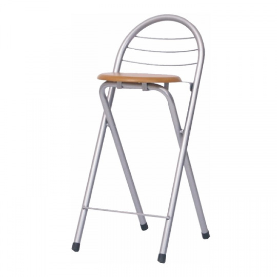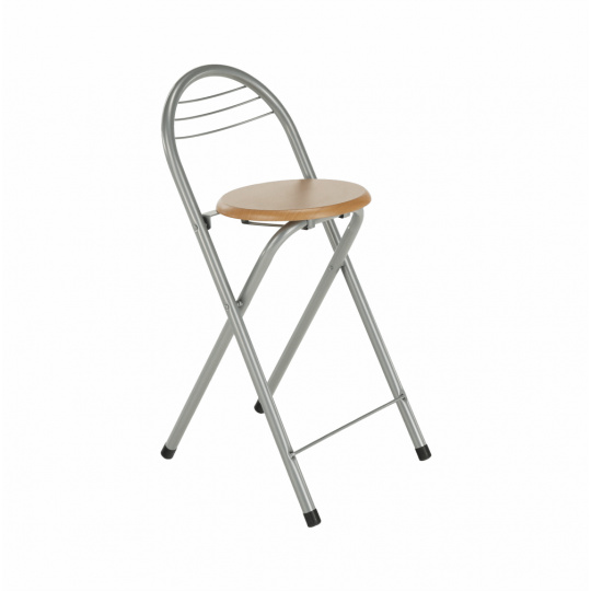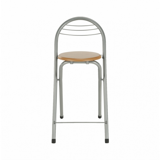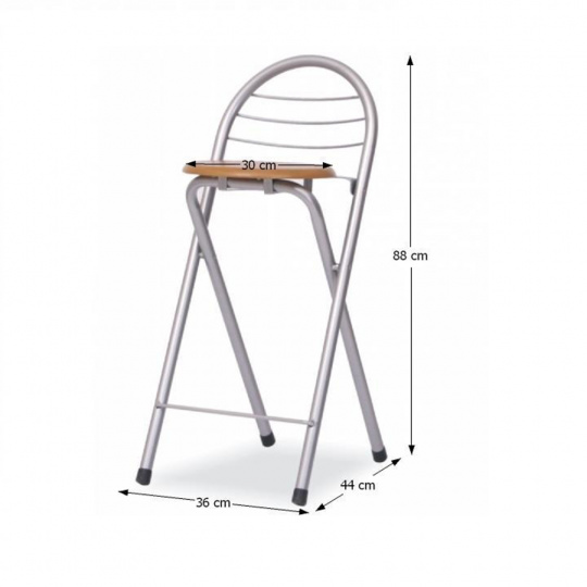 barová židle, kov s povrchovým nátěrem aluminium v kombinaci s dřevem, odstín dřeva buk, průměr 39 cm, výška sedu: 60 cm. Rozměr židle (ŠxHxV): 36x44x80 cm Nosnost židle: 80 kg Dodávané v monte.