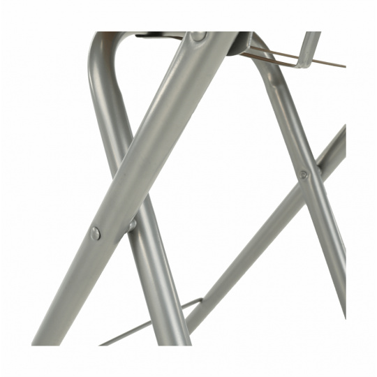 Skládací taburet / stolička IRMA Materiál: kov / ekokůže, Oděruodolnost textilie podle testu Martindale: 100 000 oděrek Barva: stříbrná /modrá, rozměry: (Průměr x V) 30x 45 cm, nosnost: 80 kg. Dodávané v monte. Hmotnost: 1.6kg