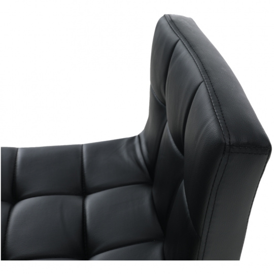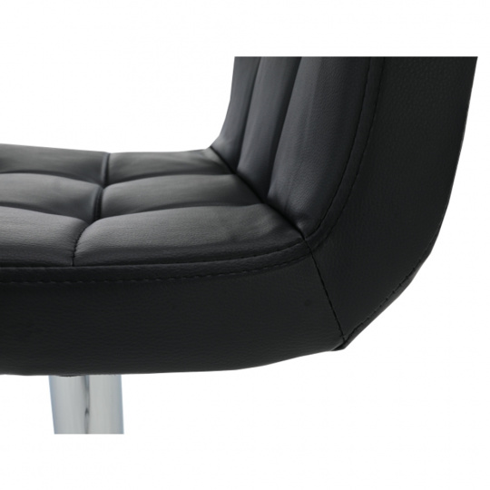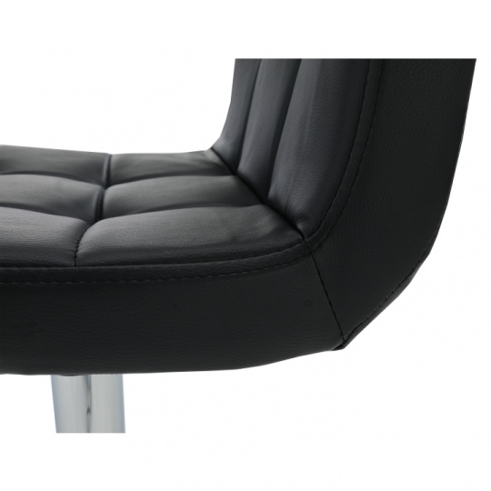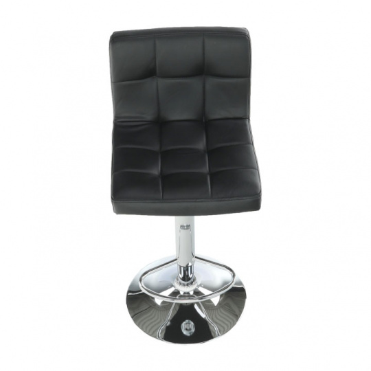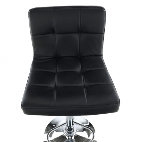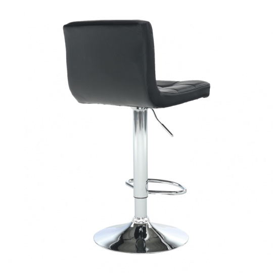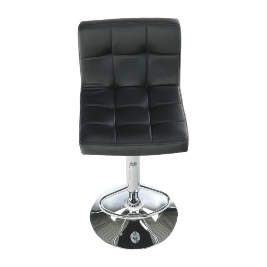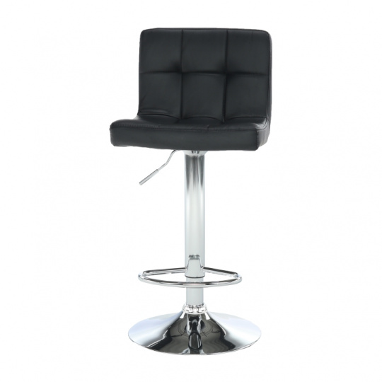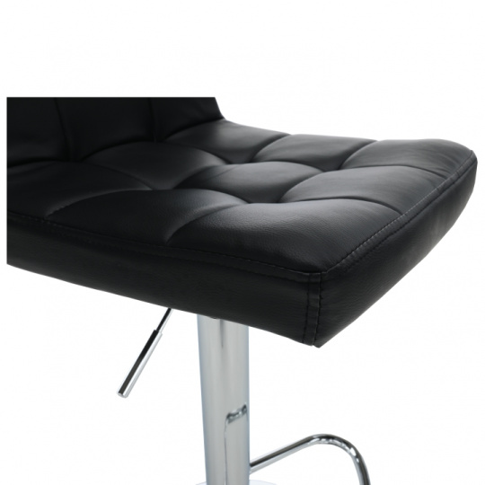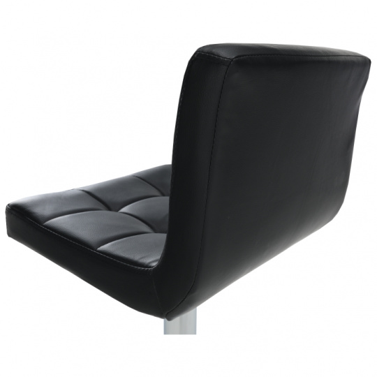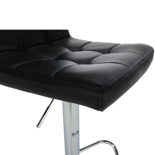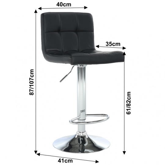 Materiál: ekokůže / chrom Oděruodolnost textilie podle testu Martindale: 100 000 oděrek Barva: černá Rozměry (ŠxHxV): 40x41x87-107 cm Výškově nastavitelné sedadlo Nastavení pomocí páčky Výška sedu: 61-82 cm Hloubka sedu: 35 cm Nosnost: 100 kg dekorativní prošití Dodávané v demontu