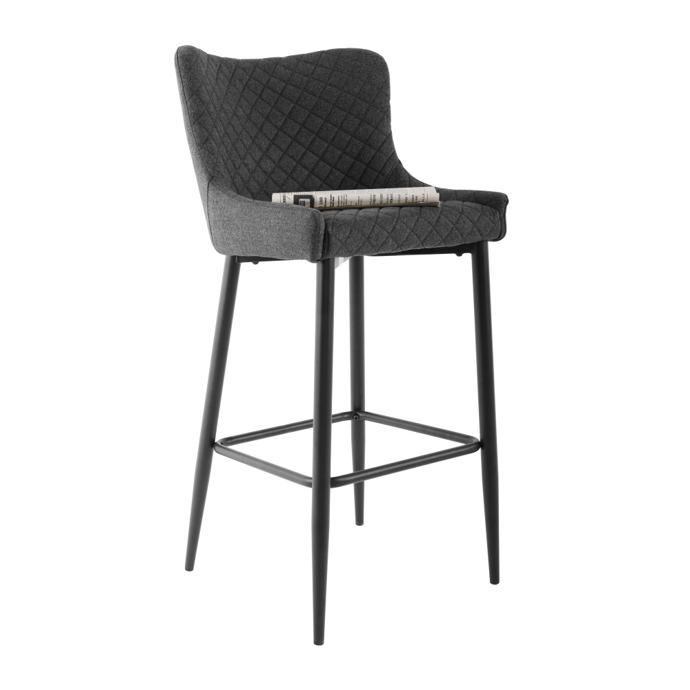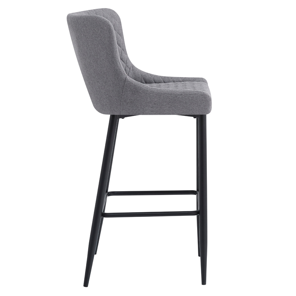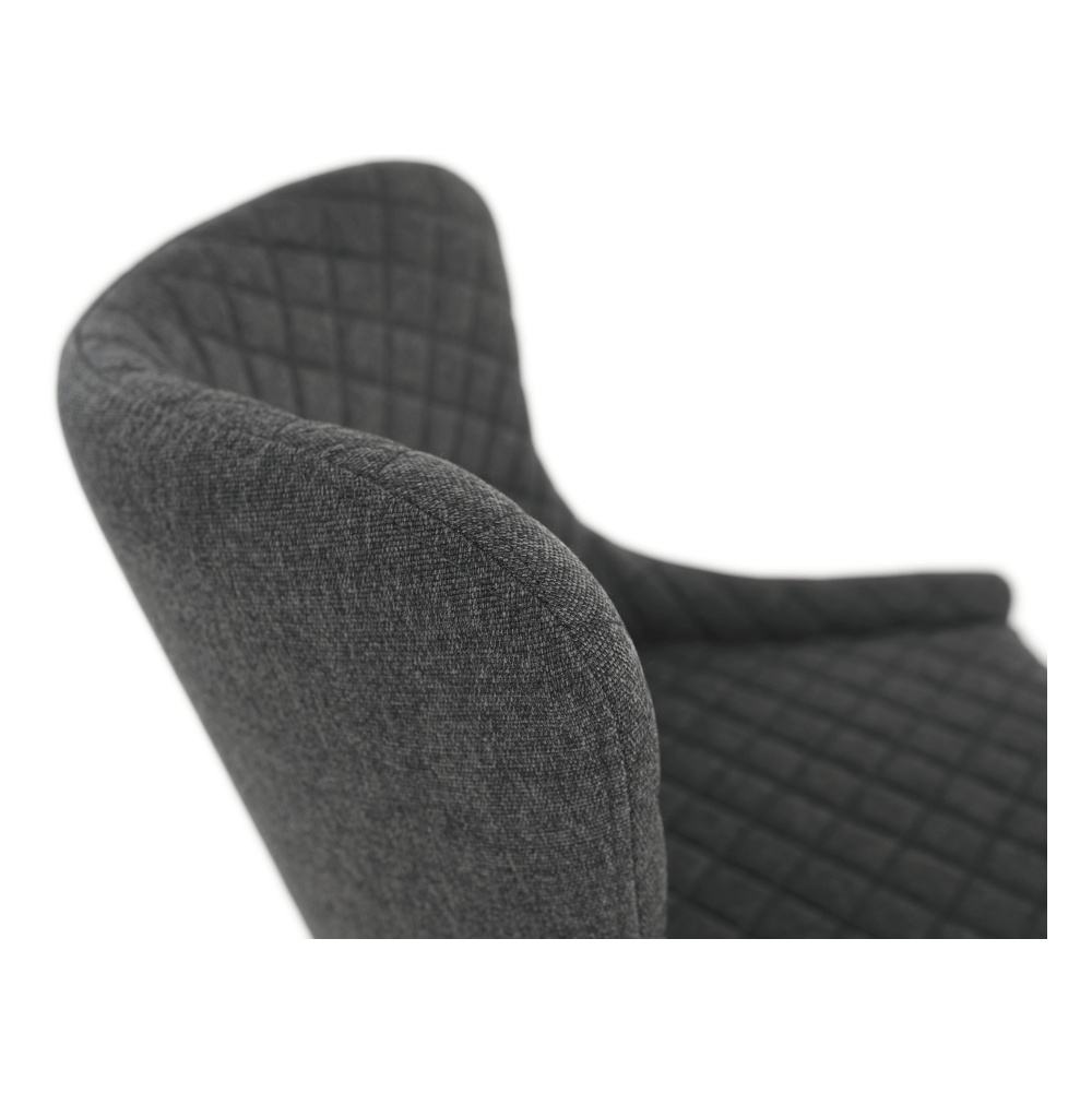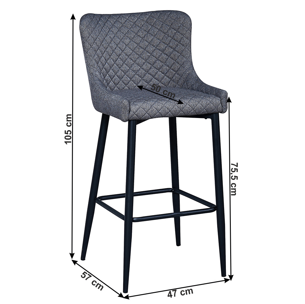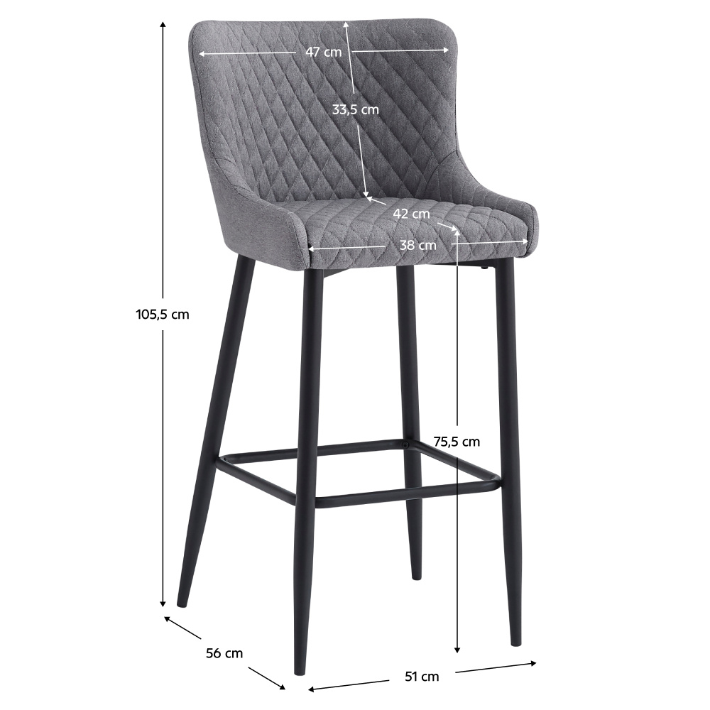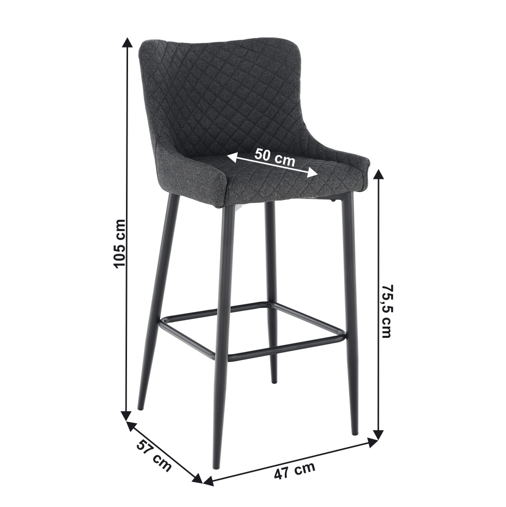 Materiál: látka/kov Oděruodolnost textilie podle testu Martindale: 65 000 oděrů Barva: šedá/černá Rozměry (ŠxHxV): 51x56x105,5 cm Výška sedu: 75,5 cm Hloubka sedu: 42 cm Šířka sedu: 38 cm Šířka zádové opěrky: 47 cm Výška zádové opěrky: 33,5 cm Nosnost: 100 kg Hmotnost: 8,6 kg Dekorativní prošití Opěrka na nohy Designová Dodáváno v demontu