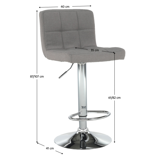 Barová židle KANDY NEW Materiál: látka / chrom Oděruodolnost textilie podle testu Martindale: 80 000 oděrek Barva: taupe - šedohnědá Rozměry (ŠxHxV): 40x41x87-107 cm výška sedu: 61-82 cm Hloubka sedu: 35 cm nosnost 100kg Dodávané v demontu.