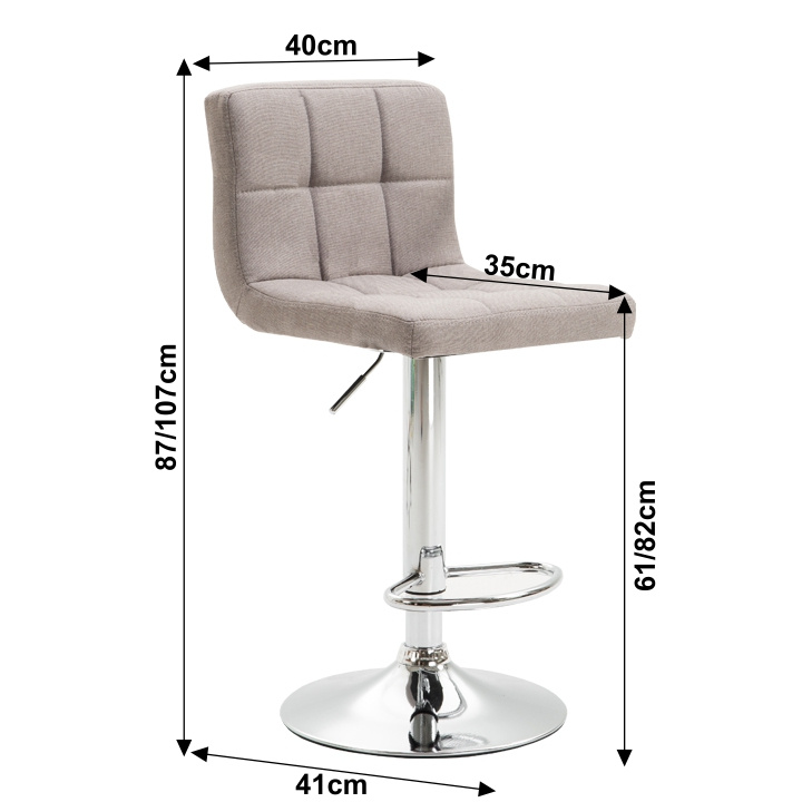 Barová židle KANDY NEW Materiál: látka / chrom Oděruodolnost textilie podle testu Martindale: 80 000 oděrek Barva: taupe - šedohnědá Rozměry (ŠxHxV): 40x41x87-107 cm výška sedu: 61-82 cm Hloubka sedu: 35 cm nosnost 100kg Dodávané v demontu.