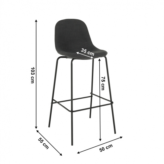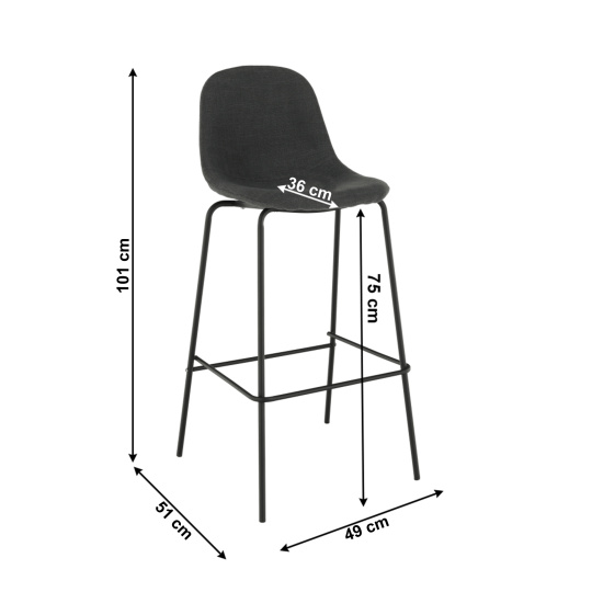 Barová židle Mariola 2 NEW, materiál: látka / kov s povrchovou úpravou v barvě černá, Barevné provedení: tmavě šedá Oděruodolnost textilie podle testu Martindale: 50 000 oděrek Materiál: látka / kov Barva: tmavě šedá / černá Rozměry (ŠxHxV): 49x51x101 cm Výška sedu: 75 cm Hloubka sedu: 36 cm Nosnost: 90 kg Dodávané v demontu
