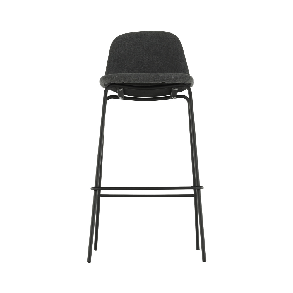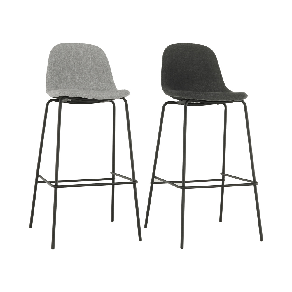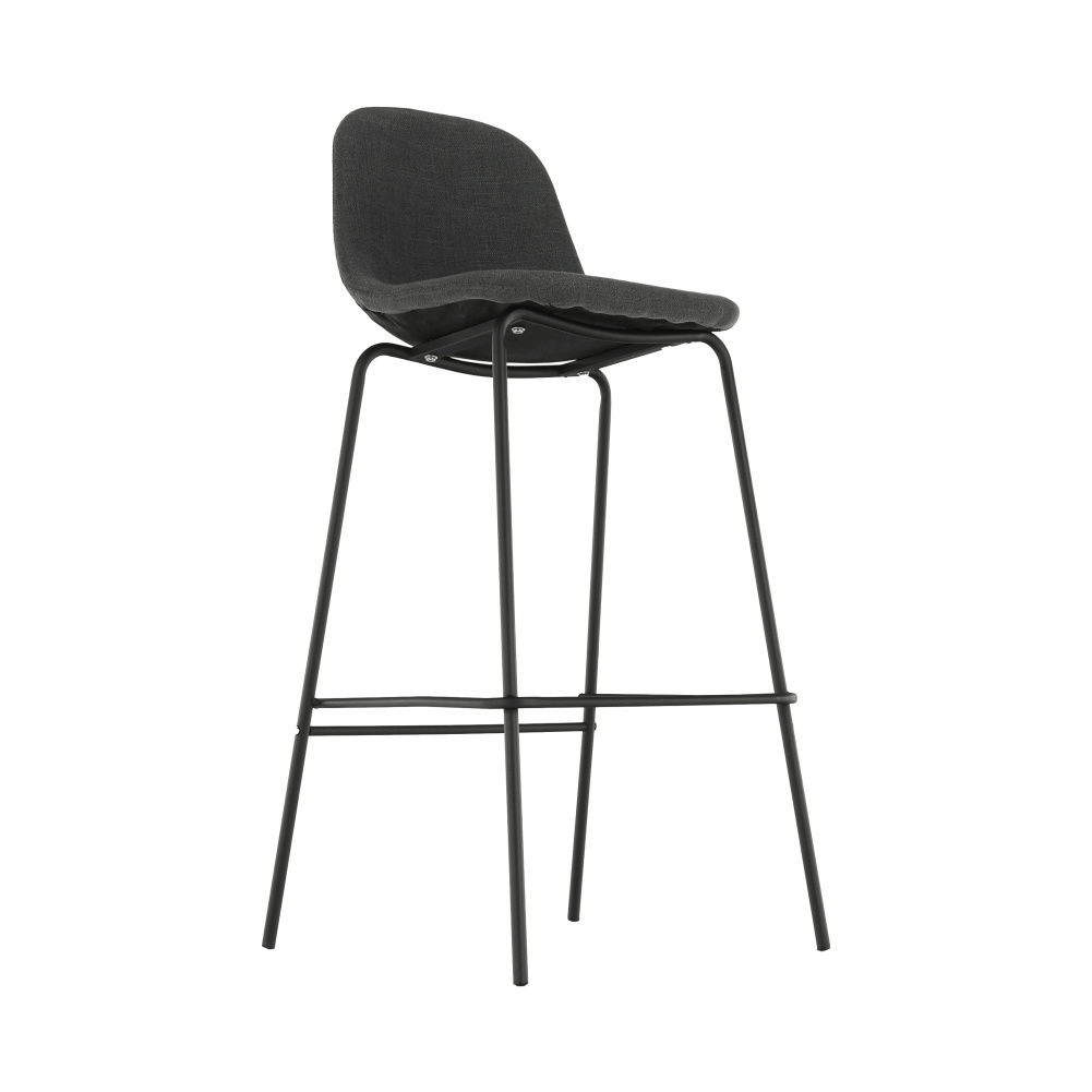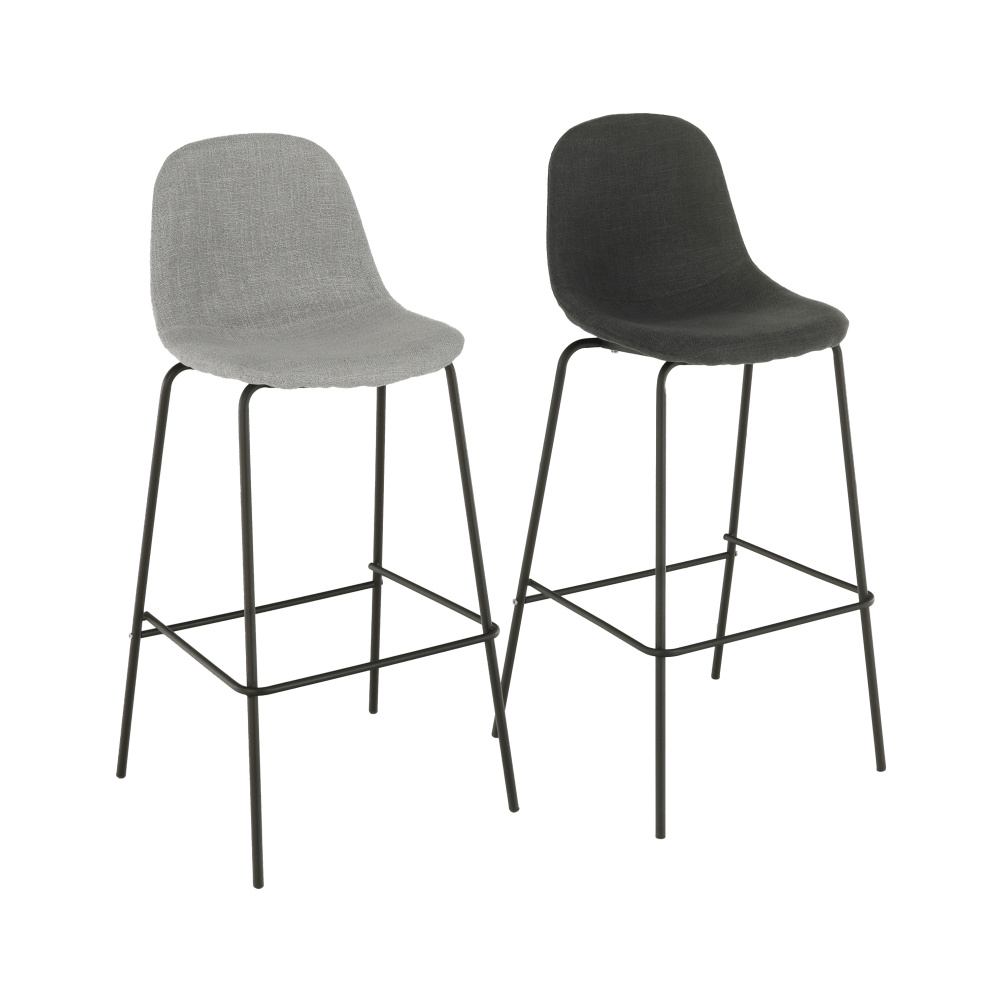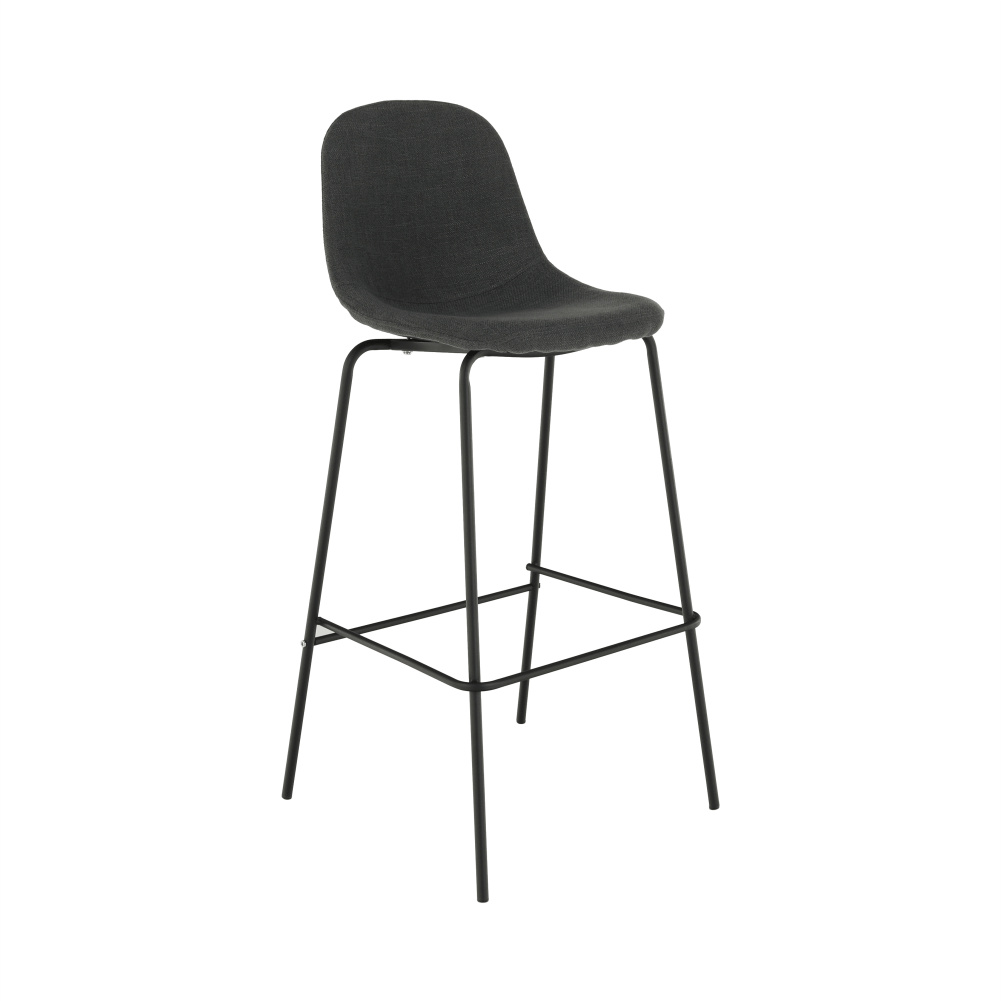 Barová židle Mariola 2 NEW, materiál: látka / kov s povrchovou úpravou v barvě černá, Barevné provedení: tmavě šedá Oděruodolnost textilie podle testu Martindale: 50 000 oděrek Materiál: látka / kov Barva: tmavě šedá / černá Rozměry (ŠxHxV): 49x51x101 cm Výška sedu: 75 cm Hloubka sedu: 36 cm Nosnost: 90 kg Dodávané v demontu
