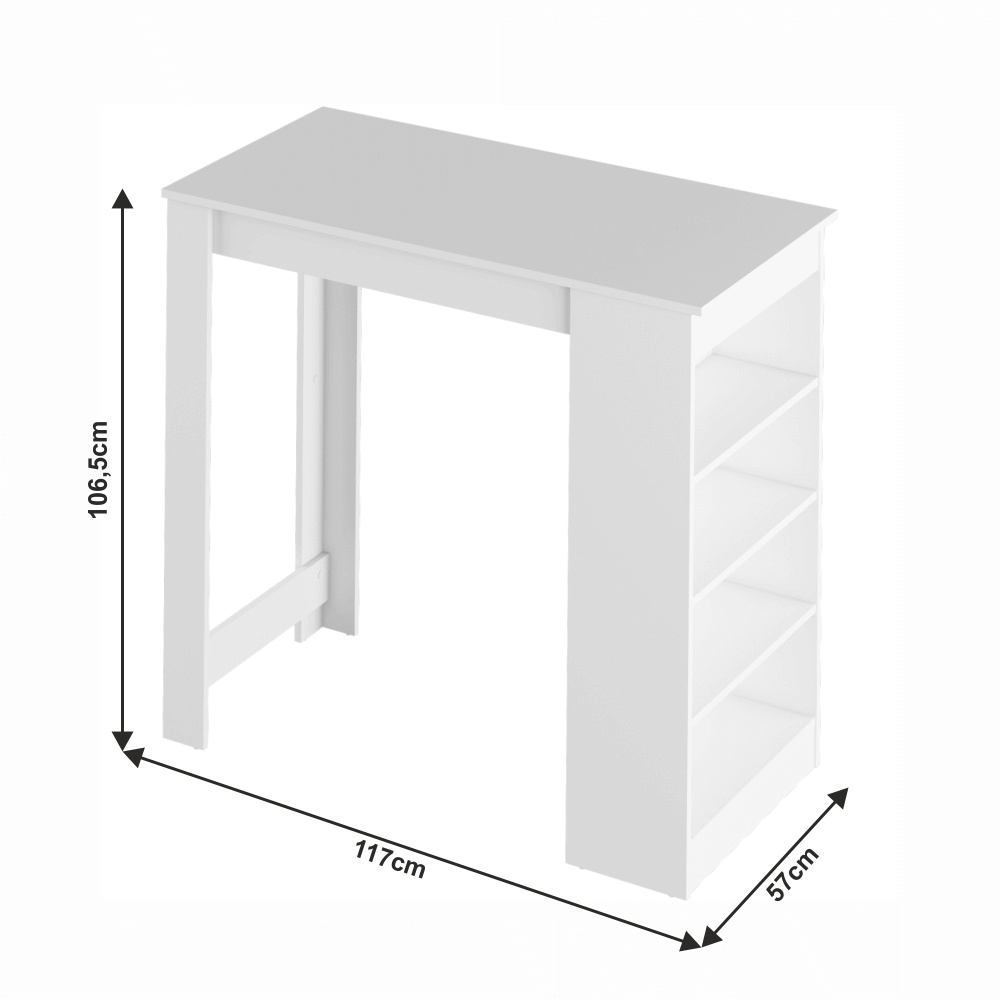 Barový stůl Austen Barva: bílá Materiál: DTD laminovaná Rozměry (ŠxHxV): 117x57x106,5 cm Tloušťka materiálu: 16 mm úložný prostor Kvalitní slovenský výrobek. Dodávané v demontu