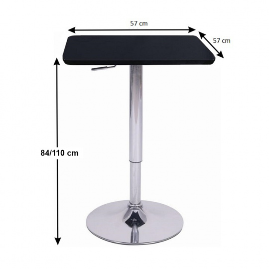 Barový stůl s nastavitelnou výškou, černá, 57x84-110 cm, FLORIAN