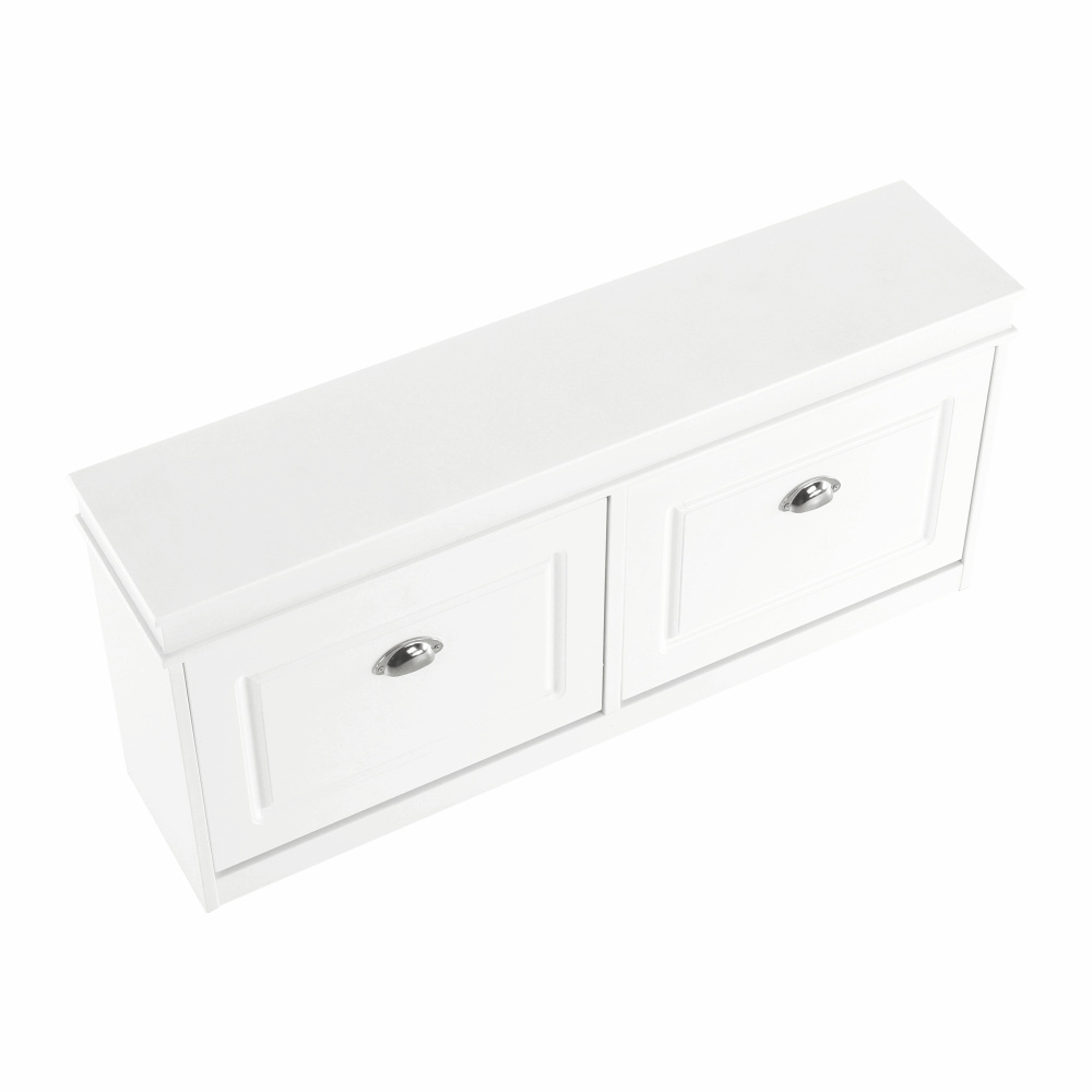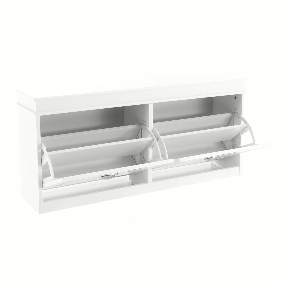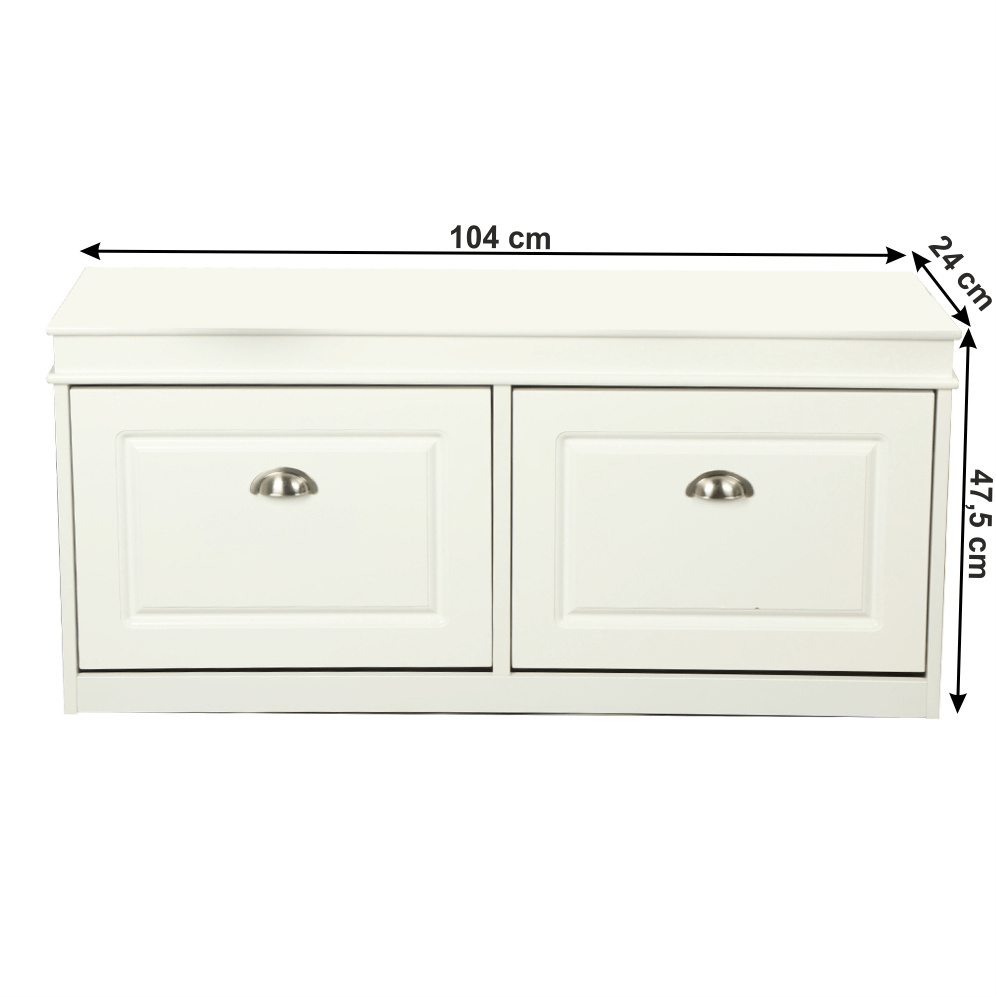 Barva: bílá Materiál: MDF / dřevotříska Rozměry (ŠxHxV): 104x24x47,5 cm 2-řadový výklopný Dodávané v demontu.