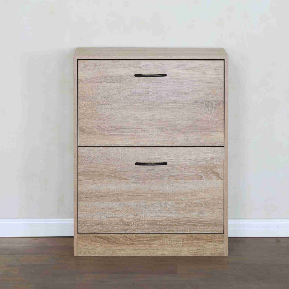 Materiál: dřevotříska/plast Barva: dub Rozměry (ŠxHxV): 60x24x81 cm Tloušťka materiálu: 1,2-1,5 cm Dva výklopné šuplíky Šuplík rozdělen na 2 části Výška spodního prostoru od podlahy: 9 cm Rozměry výklopného šuplíku (ŠxV): 56,4x34,5 cm Nosnost výklopného šuplíku: 6 kg Nosnost vrchní desky: 10 kg Moderní design Praktický Dodáváno v demontu