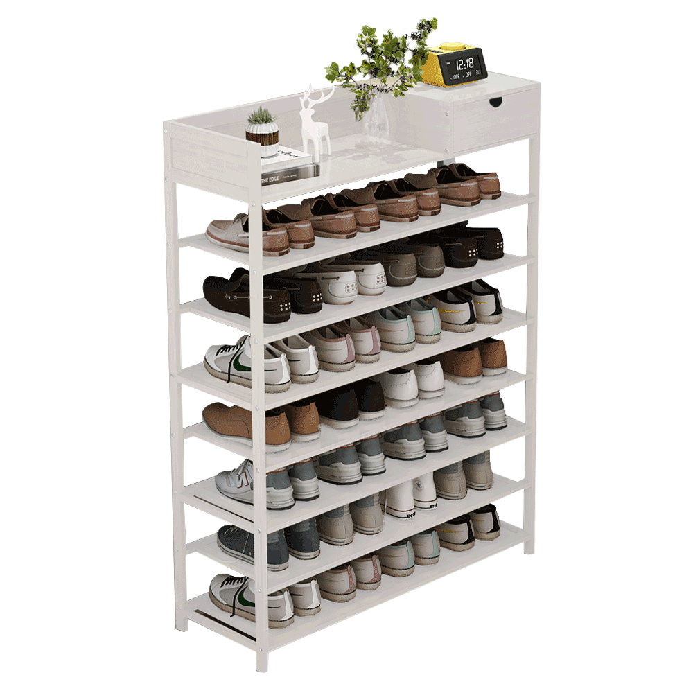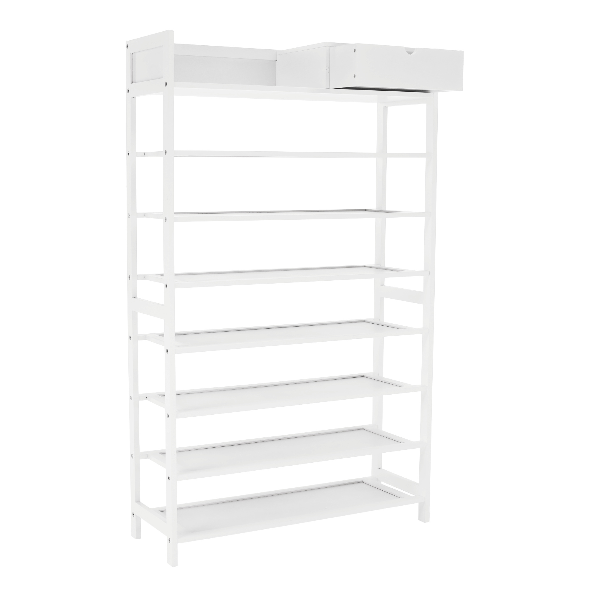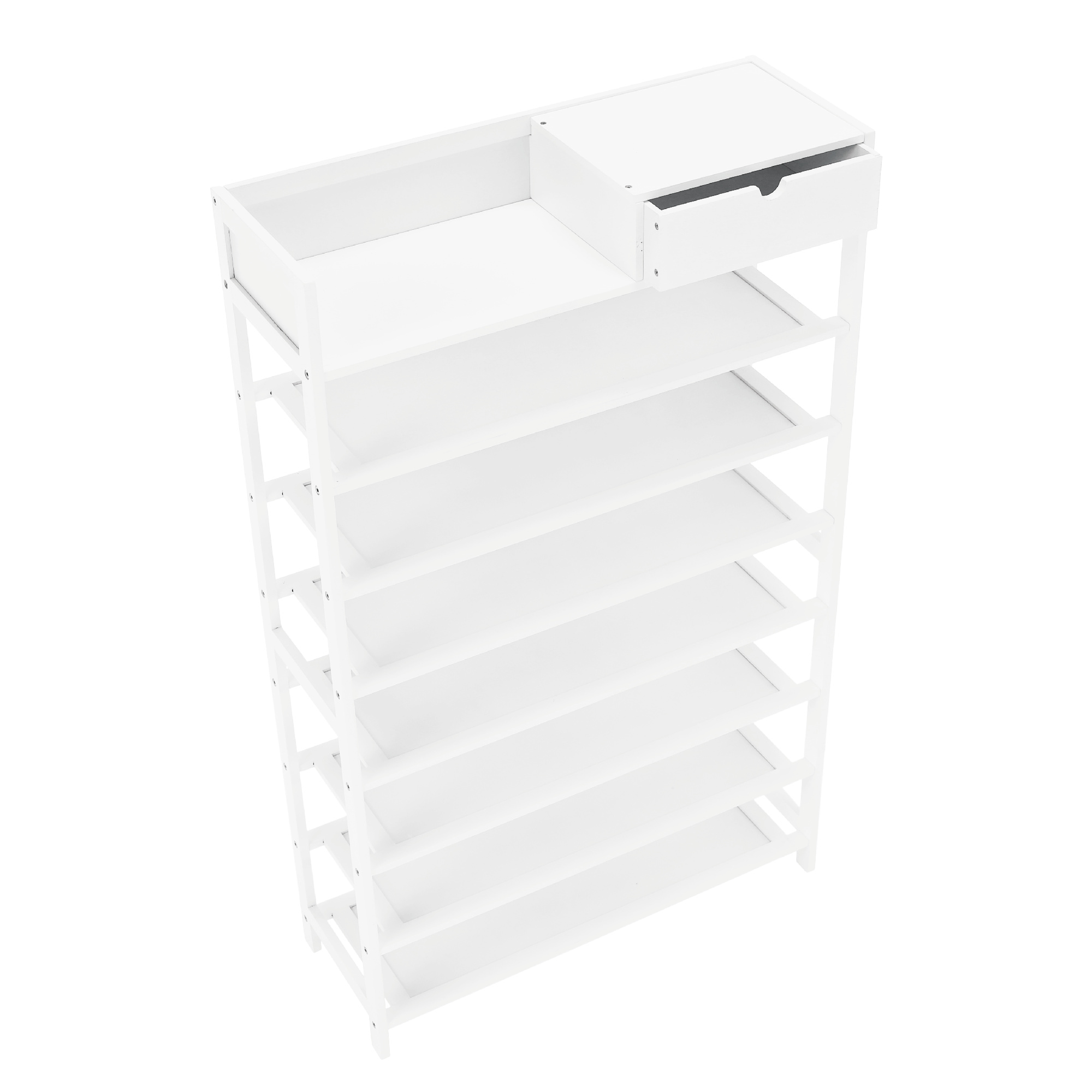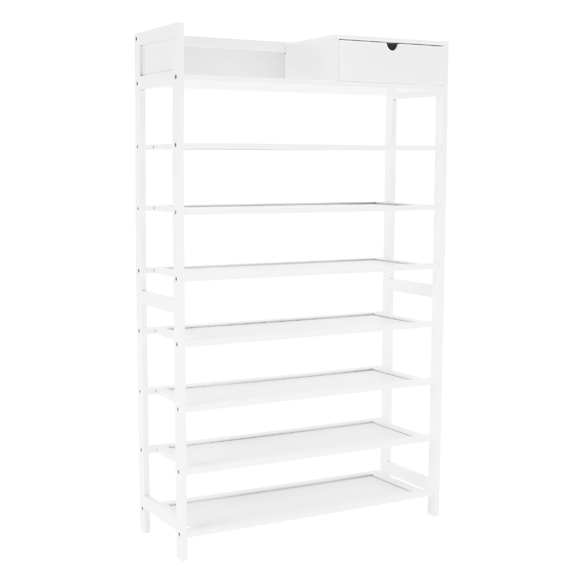 Materiál konstrukce: bambus lakovaný Barva konstrukce: bílá Rozměry (ŠxHxV): 70x25x117 cm 7-řadový botník Prostor pro organizaci v předsíni, vstupní hale nebo šatníku Jednoduchý a praktický regál na boty Otevřené police a jedna zásuvka přírodní design jednoduchá montáž snadná údržba Nosnost: 50 kg (rovnoměrná zátěž) Dodávané v demontu