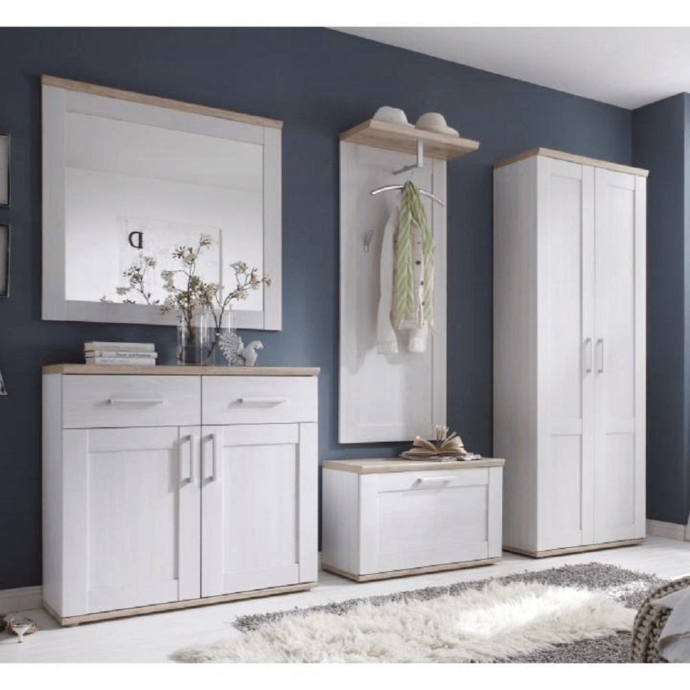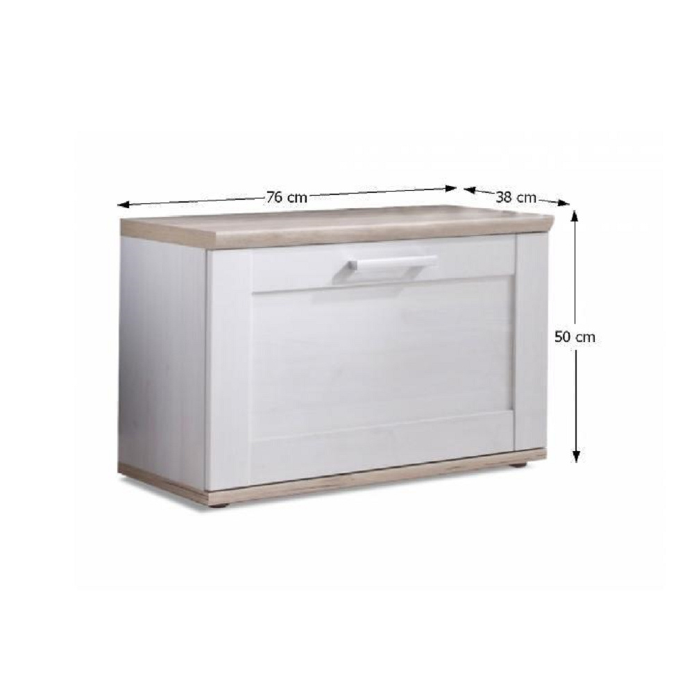 Botník z síňové sektorové sestavy ProVens. Bílý korpus, vrchní a spodní plát dub San Remo DTD fóliovaná Rozměry (ŠxHxV): 76x38x50 cm. Dodávané v demontu.