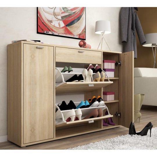 Výklopný dvouřadý botník, dub sonoma, IZABELA