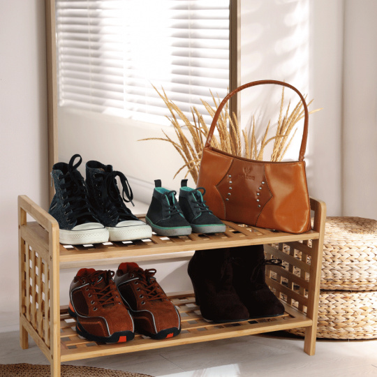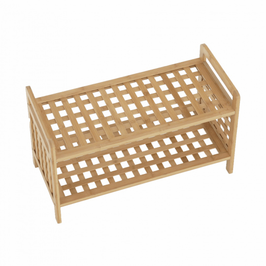 Botník SOVETO TYP 1 Materiál: bambus lakovaný Barva: přírodní bambus Rozměry: (ŠxHxV): 60x27,5x35 cm 2-policový Výška mezi policemi: 22 cm Dodávané v demontu.