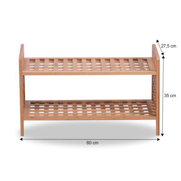 Botník SOVETO TYP 1 Materiál: bambus lakovaný Barva: přírodní bambus Rozměry: (ŠxHxV): 60x27,5x35 cm 2-policový Výška mezi policemi: 22 cm Dodávané v demontu.