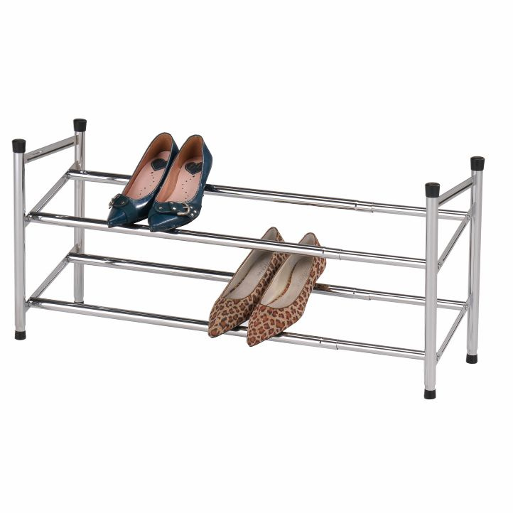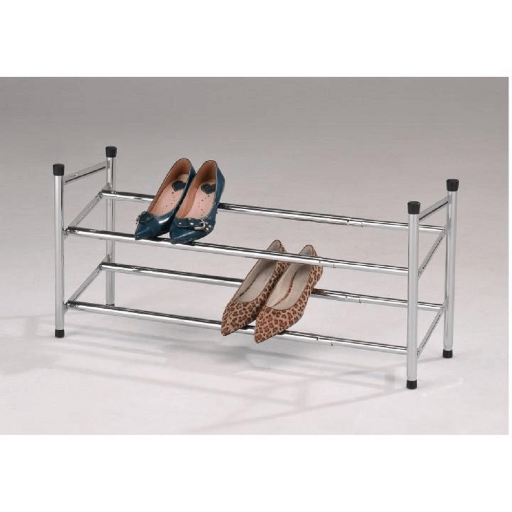 2-řadový nastavitelný botník TEA Materiál: chrom Provedení chromovaná / černá Rozměry (ŠxHxV): 63-110x23x35 cm Nastavitelná šířka botníku Dodávané v demontu