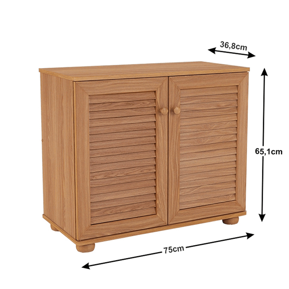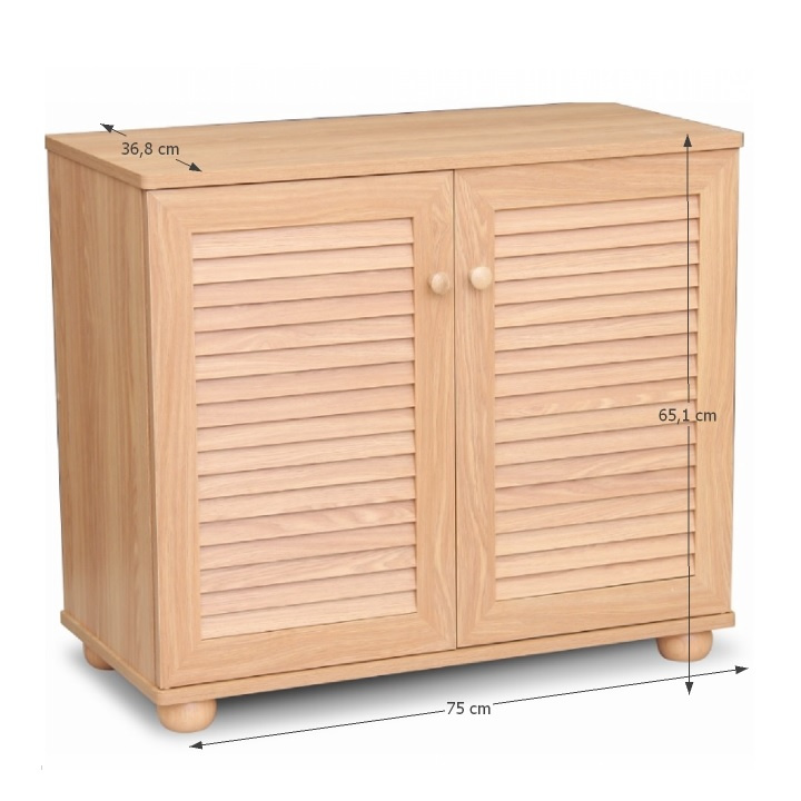 Dvoudveřový botník FP 01 Materiál: MDF laminovaná Barevné provedení: natural. Rozměry: ŠxHxV: 75x36,8x65,1 cm. Dodáváno v demontu.