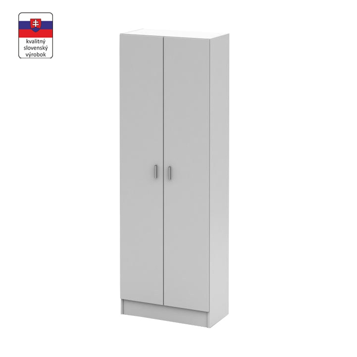 Materiál: DTD laminovaná Barva: bílá Rozměry (ŠxHxV): 90x35x190,8 Tloušťka materiálu: 1,6 cm Policový Nosnost police: 5 kg 2 zásuvky Rozměry zásuvky (ŠxV): 44,6x18,8 cm Nosnost zásuvky: 5 kg Dvoudveřový S úchytkami Materiál úchytek: PVC Barva úchytek: stříbrná Na kluzácích Praktický Víceúčelový Kvalitní slovenský výrobek Doporučujeme přip
