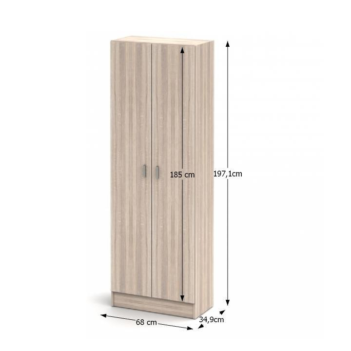 Botníková skříň MARÍNA. Materiál: laminovaná DTD Barva: dub sonoma Rozměry (ŠxHxV): 68x34,9x197,1 cm Tloušťka materiálu: 16 mm Dodávané v demontu.