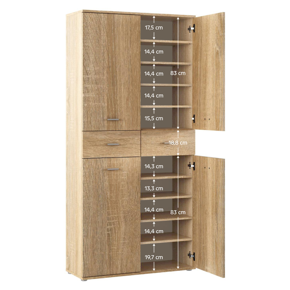 Materiál: DTD laminovaná Barva: dub sonoma Rozměry (ŠxHxV): 90x35x190,8 Tloušťka materiálu: 1,6 cm Policový Nosnost police: 5 kg 2 zásuvky Rozměry zásuvky (ŠxV): 44,6x18,8 cm Nosnost zásuvky: 5 kg Dvoudveřový S úchytkami Materiál úchytek: PVC Barva úchytek: stříbrná Na kluzácích Praktický Víceúčelový Kvalitní slovenský výrobek Doporučujeme připevnit ke zdi Dodáváno v demontu