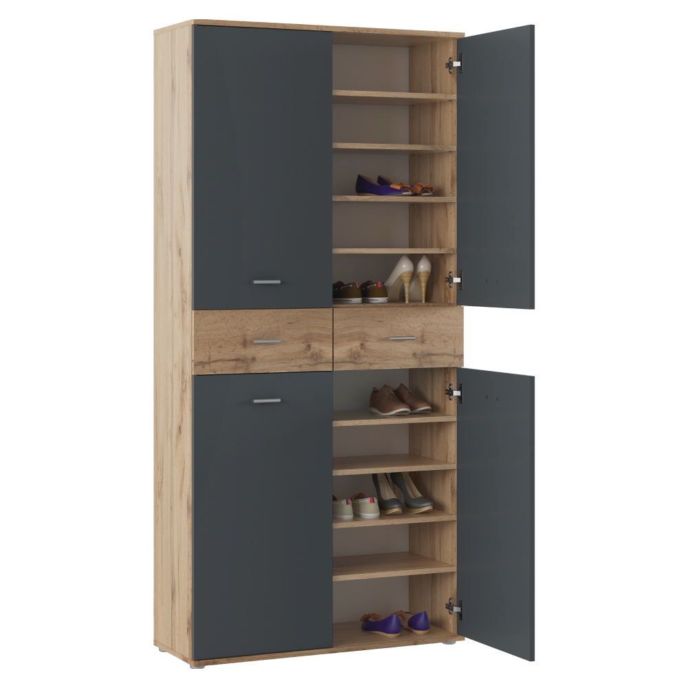 Botníková skříň/regál, grafit/dub wotan, VILOT