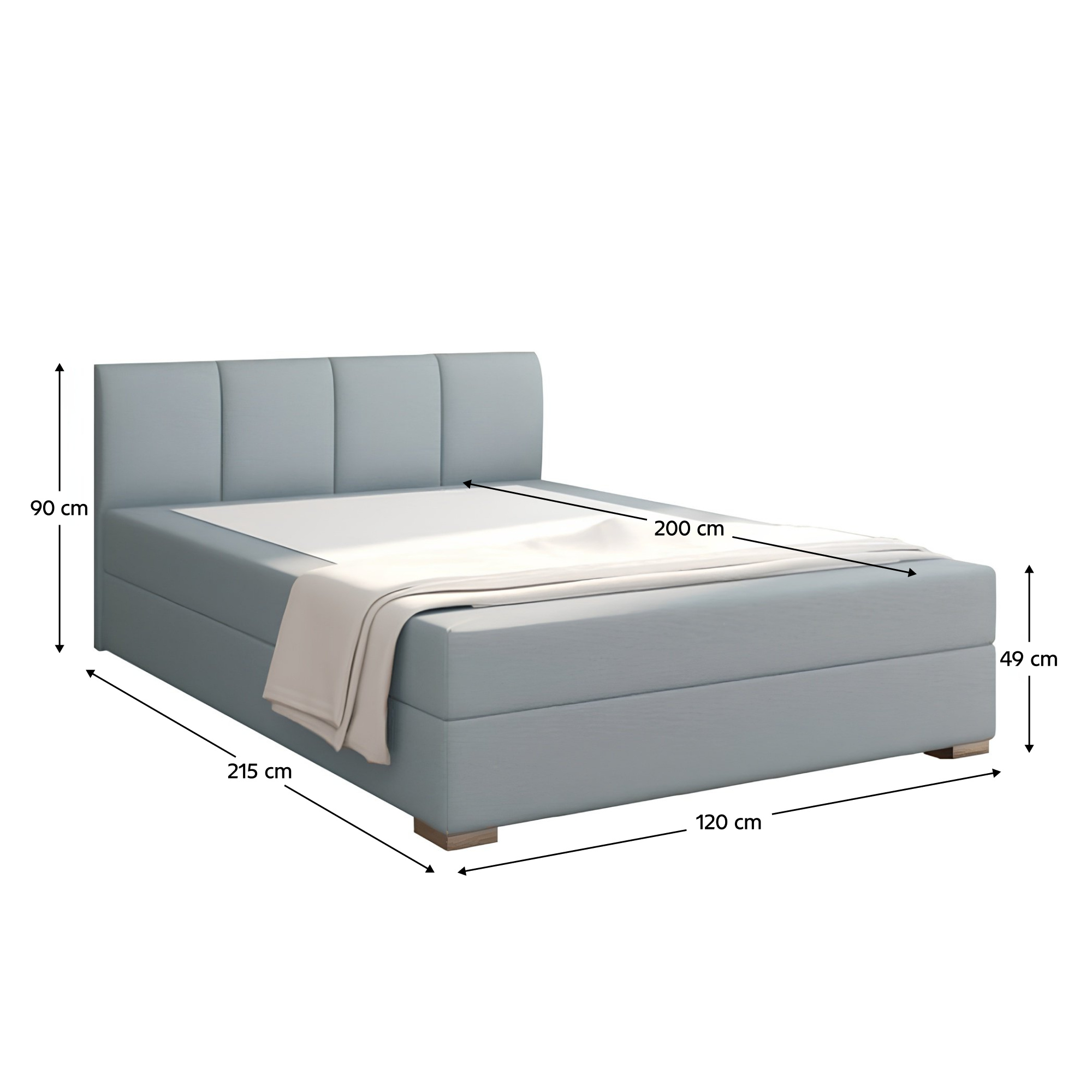 ;"Boxpringová postel 120x200, RIANA KOMFORT Materiál: látka Colet Oděruodolnost textilie podle testu Martindale: 50 000 oděrek Barva: 83 Colet mentolová Rozměry (ŠxHxV): 120x215x90 cm Plocha na spaní (ŠxD): 120x200 cm Výška po rošt: 49 cm Nosnost: 120 kg na jedno lůžko Dodávané s matrací z bonelových pružin Tvrdost matrace: středně tvrdý T3 Středně tvrdá matrace (stupeň tvrdosti T3) se dokáže nejlépe přizpůsobit ležícímu, nevytváří protitlak a udržuje páteř v rovině. Je vhodný pro lidi s hmotností od 70 do 120 kilogramů. Tento typ se hodí na spaní v jakékoli poloh Bez krycí podložky. Pevná spodní dřevěná konstrukce, čalouněná látkou. Dodávané v demontu. Možnost objednání iv jiných provedeních látky Colet. Při individuální objednávce je třeba zaplatit 20% zálohu z dané částky. Po uhrazení zálohy bude Vaša objednávka zadána do výroby. Doba dodání 8-10 týdnů.