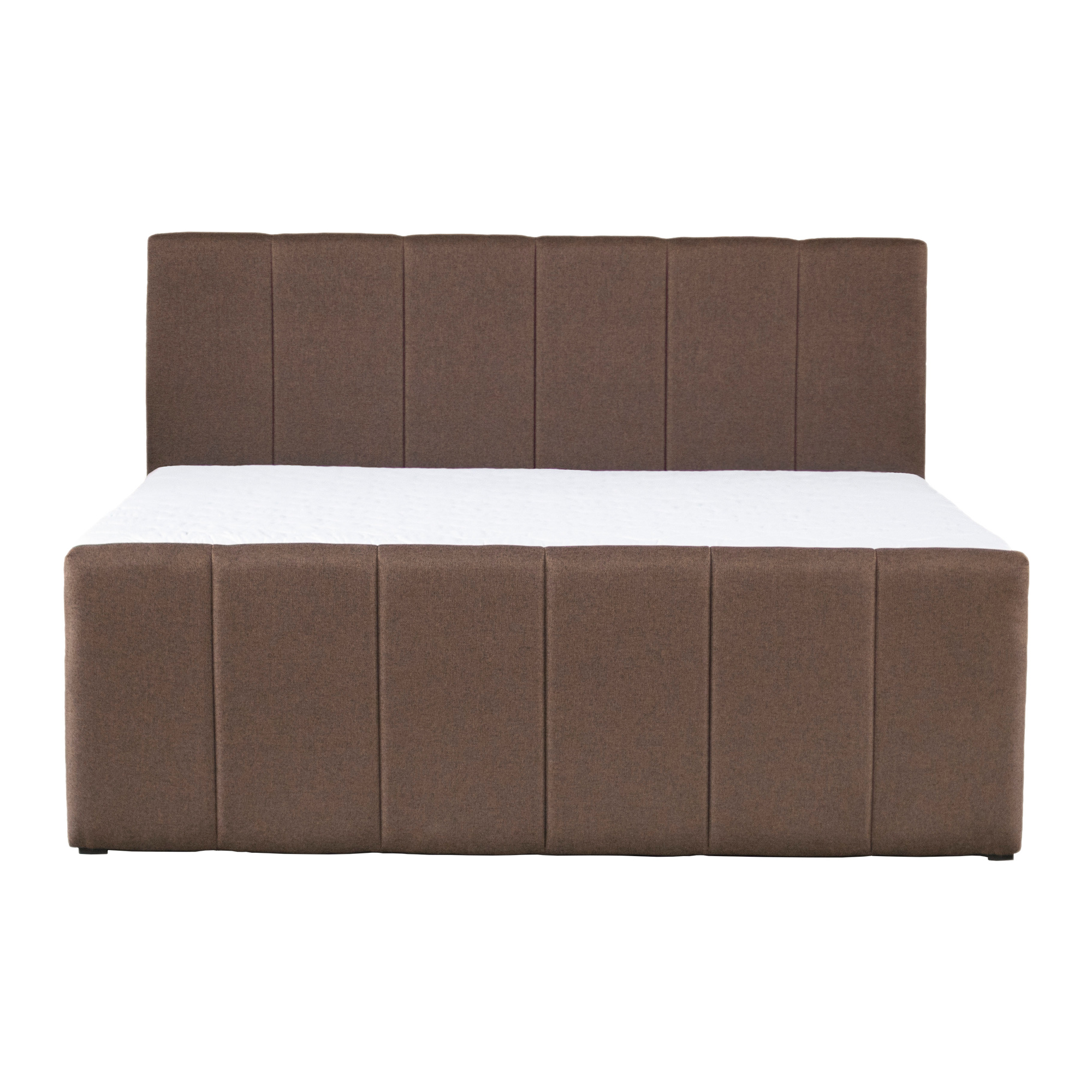Materiál: látka Malmo New 26 Oděruodolnost textilie dle testu Martindale: 30 000 oděrů Barva: hnědá Rozměry (ŠxHxV): 147x214x104 cm Plocha na spaní (ŠxD): 142x200 cm Výška spaní: 54 cm Nosnost: 120 kg S úložným prostorem S vysokým čelem Dodáváno s matrací z bonelových pružin Dodáváno s vrchním toperem Výška topera: 4 cm Tvrdost matrace: středně tvrdý T3 Pevná spodní dřevěná konstrukce, čalouněná látkou Snímatelný potah Dodáváno v demontu