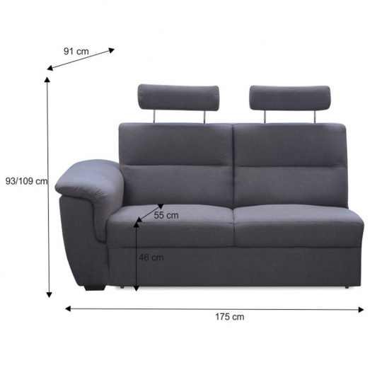 Část s opěrkami, šedá látka, na objednávku, levá, BORN 3 1B ZZ