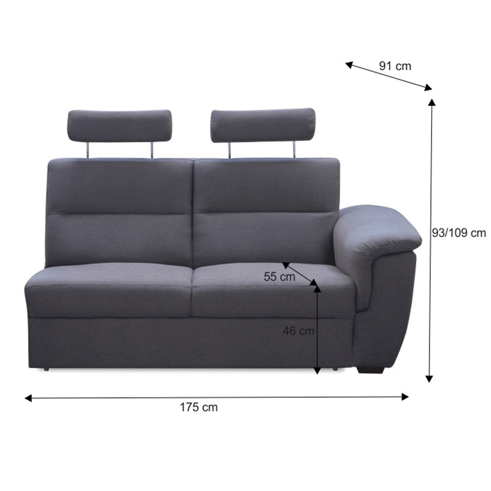 Část s opěrkami, šedá látka, na objednávku, pravá, BORN 3 1B ZZ