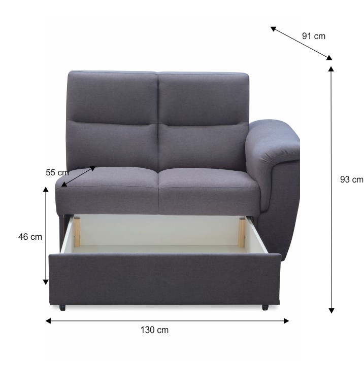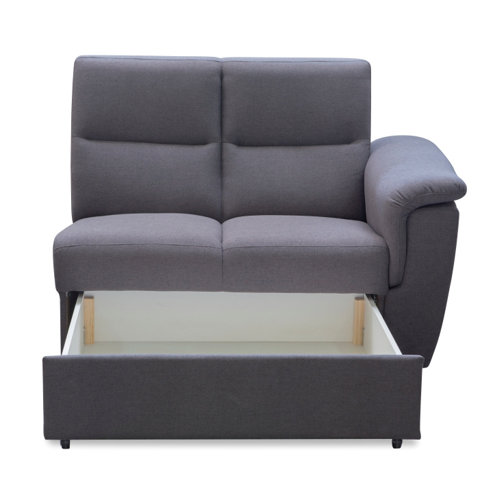 Část s opěrkou a úložným prostorem, šedá látka, na objednávku, pravá, BORN 2 1B ZS
