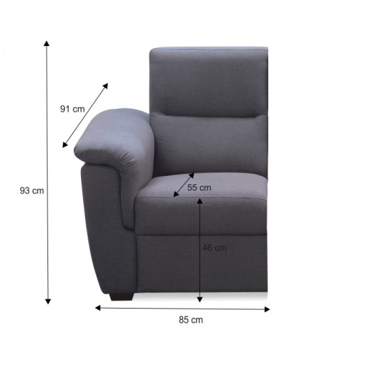 ;"1 1B celočalouněné BORN Materiál: látka Oděruodolnost textilie podle testu Martindale: 72 000 oděrek Barva: šedá levé provedení Rozměry (ŠxHxV): 85x91x93 cm Výška spodního prostoru od podlahy: 3 cm Nosnost na osobu: 90 kg Dodávané v demontu. Při individuální objednávce je třeba zaplatit 20% zálohu z dané částky. Po uhrazení zálohy bude Váš požadavek zadána do výroby. Doba dodání 6-8 týdnů. Cena takto složené sedačky v jiné barvě závisí na počtu jednotlivých dílů, které ji tvoří. Doporučujeme prověřit si konečnou cenu na e-mail adrese nakup@tempo-kondela.sk.