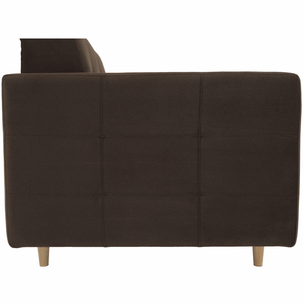 Celočalouněný rozkládací 3-sed s úložným prostorem. Materiál: látka Shaggy / dřevo Oděruodolnost textilie podle testu Martindale: 50 000 oděrek Barva: čokoládová / natural Rozměry (ŠxHxV): 210x94x92 cm, plocha na spaní (ŠxD): 124x180 cm Výška spodního prostoru od podlahy: 13 cm Nosnost na osobu: 90 kg Dodávané v demontu.